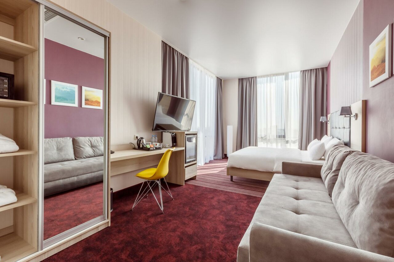 Потрясающий отель, классный вежливый персонал, везде приятный запах, чистота! Кофемашина в номере. Своя парковка. Бесплатно предоставляют 2 глубокие кроватки для детей! Классный ресторан на 1 этаже, есть игровая комната, доставка еды в номер. В Краснодаре останавливаемся только тут! Были уже 3 раза и каждый раз были учтены все наши просьбы, цены очень приемлемые для такого сервиса. А мы очень привередливые посетители) желаю компании только процветания!