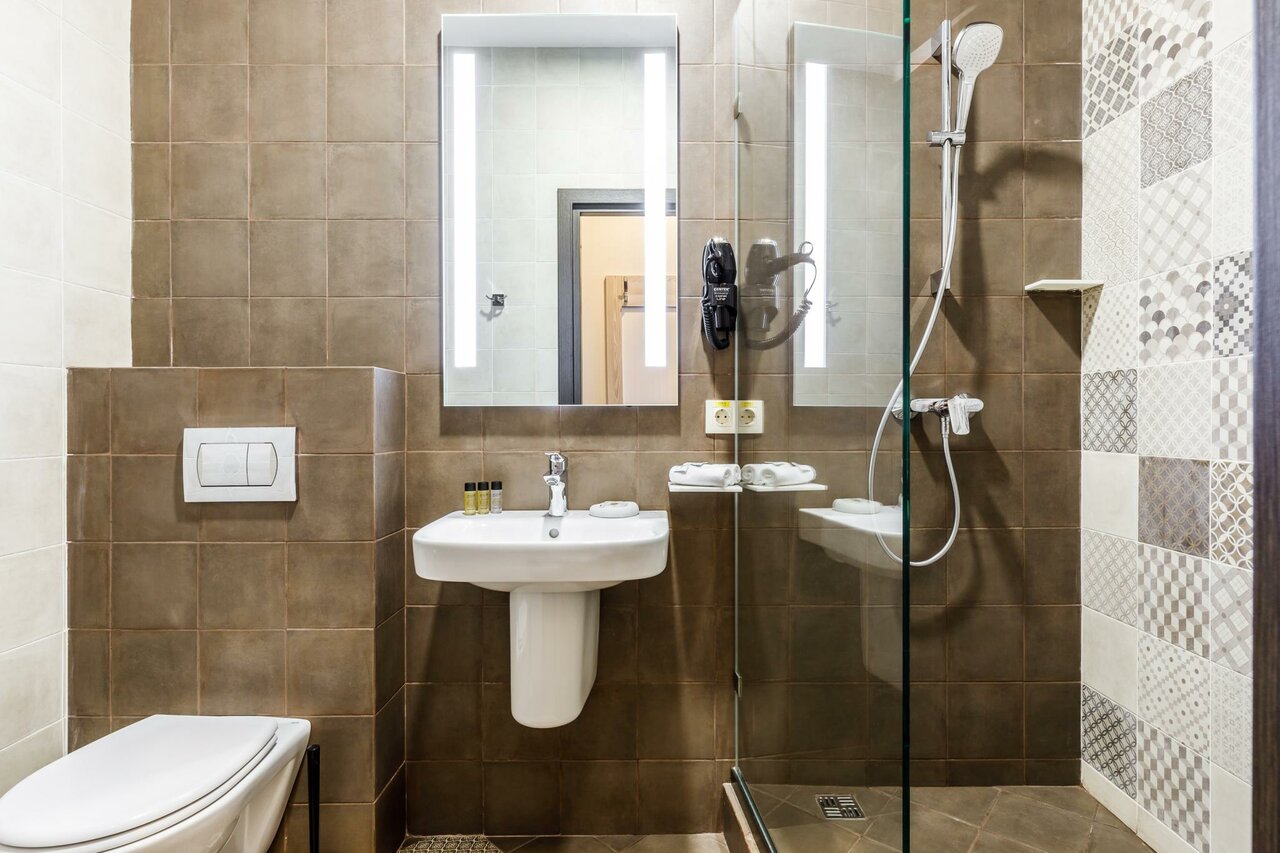 - Современный интерьер и хорошая сантехника.