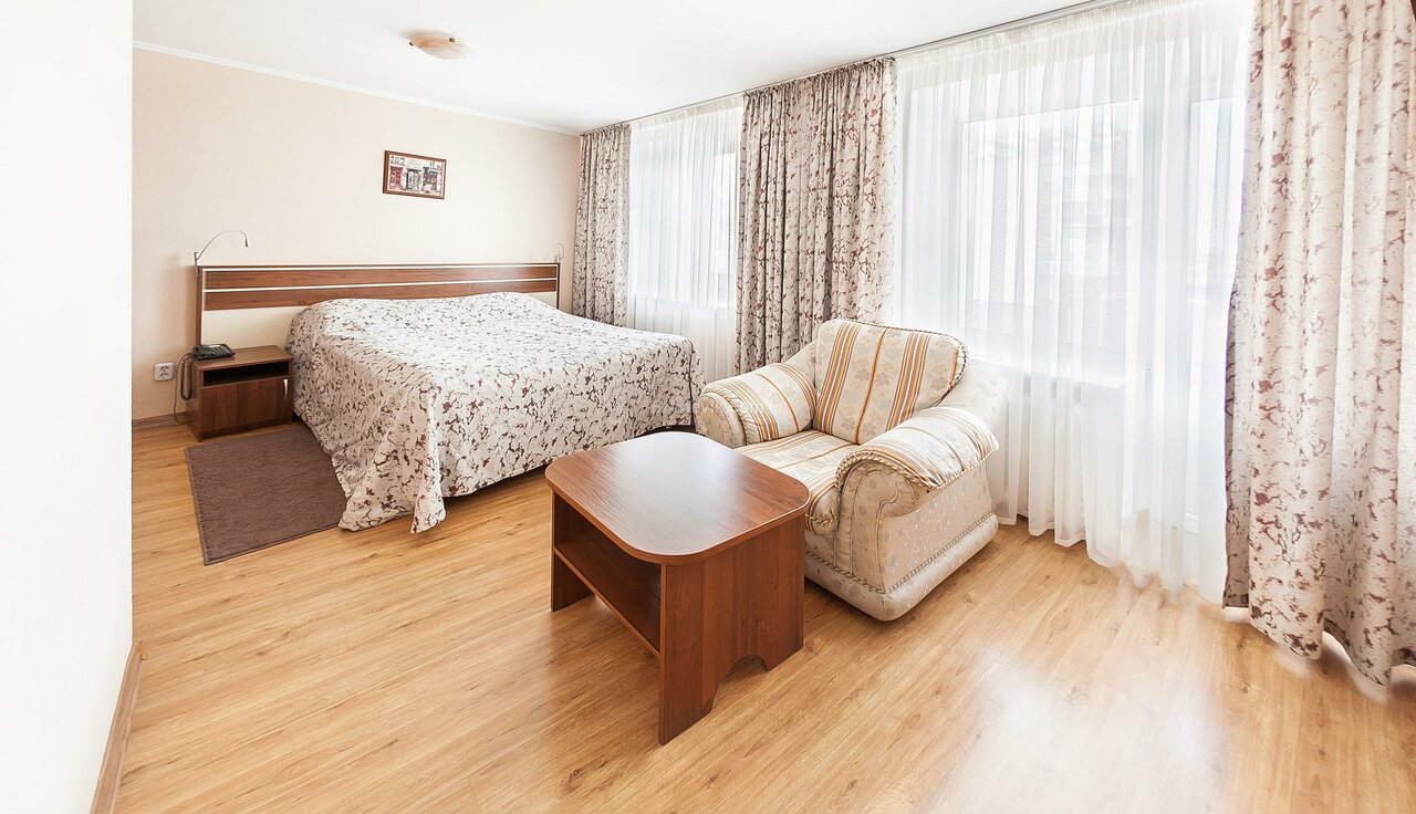 Милый, провинциальный стиль старинного русского городка. Деревянная мебель, уютная кровать и кресла.…Для гостей комплекса посещение релакс-зоны SPA предоставляется комплиментарно.