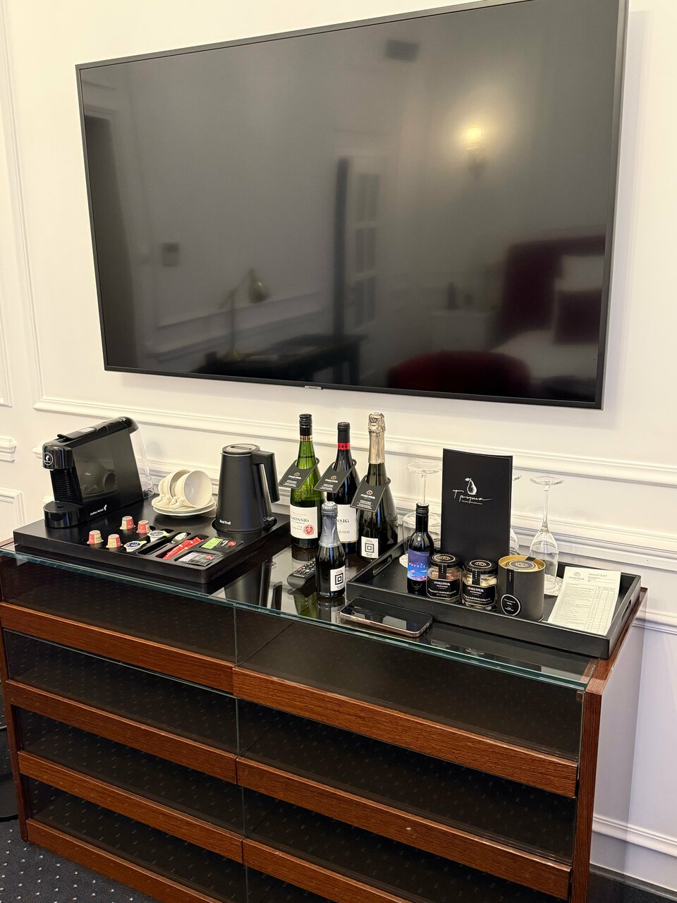 Гостиница не соответсвует 5 звёздам, до этого далеко. Нет ни кофе ни чая в номере , ужасная шумоизоляция, грязный столик прикроватный ( разлитые напитки)на полу так же что то разлито пятна. Не советую от слова совсем