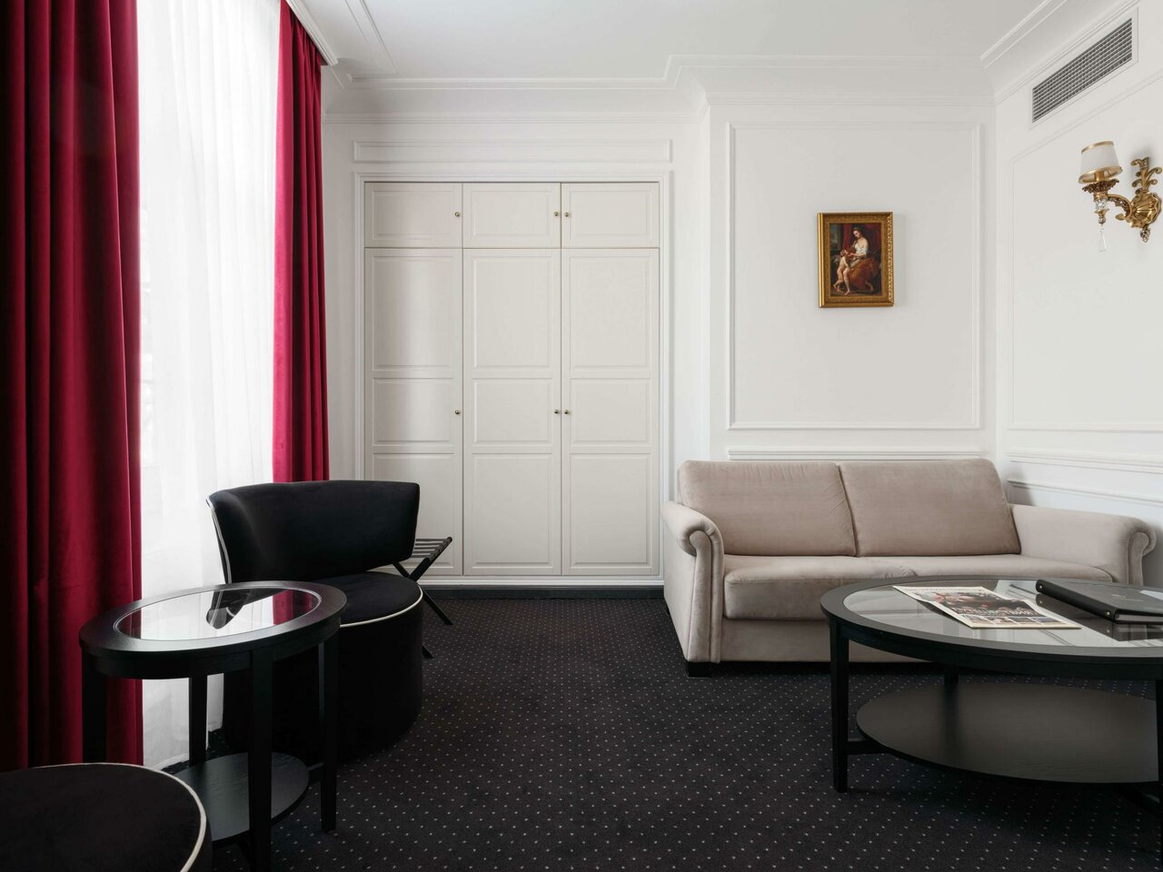 - Красивый отель с высокими потолками и толстыми стенами.; Уютные и продуманные номера.; Торжественная и приятная атмосфера.; Хорошая косметика в номерах.; Идеальное расположение для прогулок.