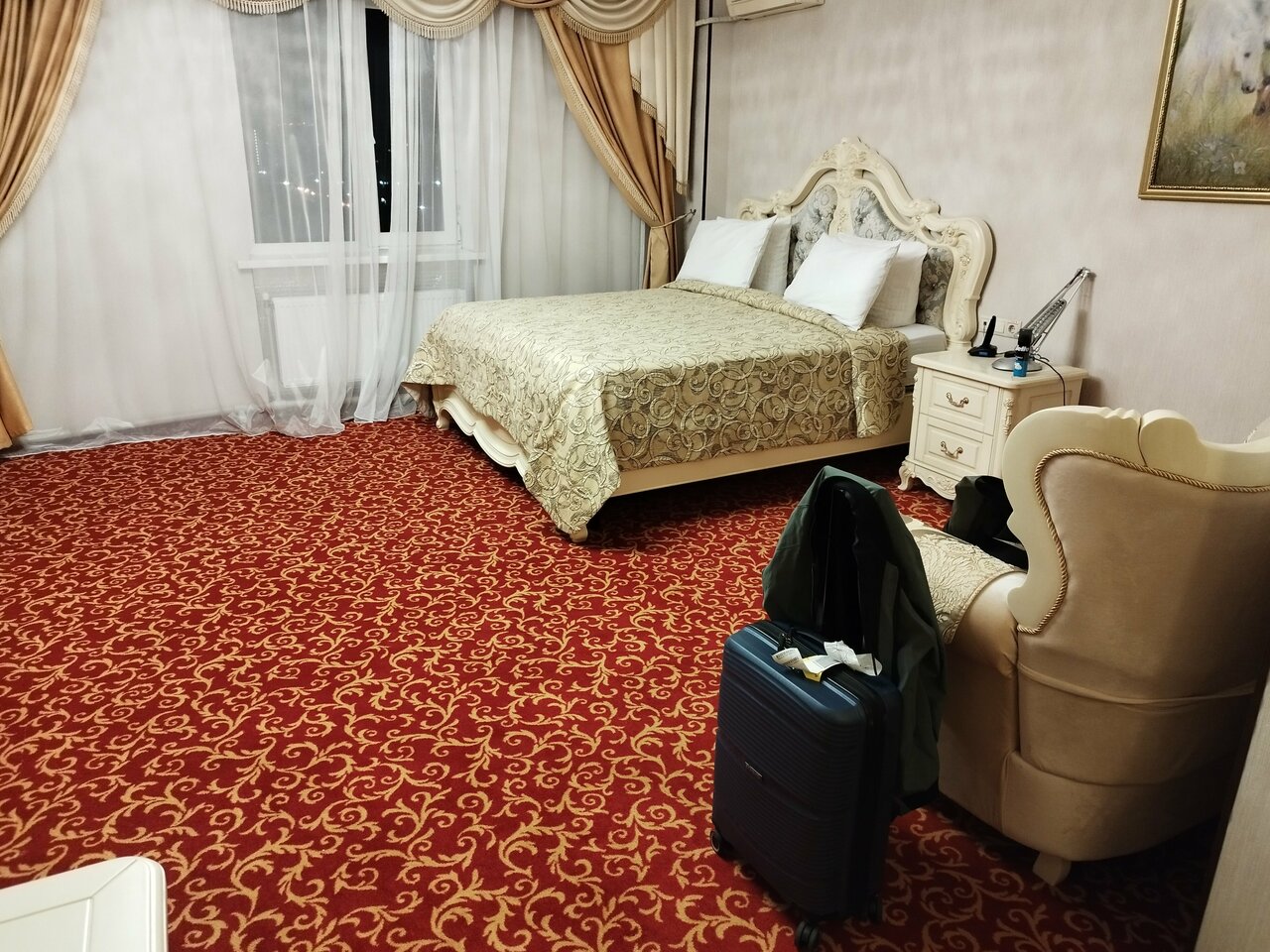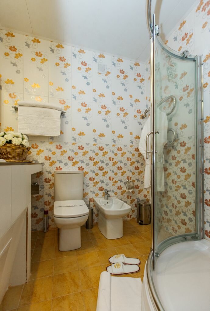Гостиница имеет 4 звезды. Шикарное внутреннее убранство встречает нас на входе. Приветливый персонал. Номера комфортные уютные с системой кондиционирования, плазменных телевизором, минихолдильником. Один минус- плохая вентиляция в санузле. При принятии душа в душевой кабине потеют зеркала, что говорит о высокой влажности. Есть биде. Номер чистый на полу ковролин. Находится в спокойном районе города.