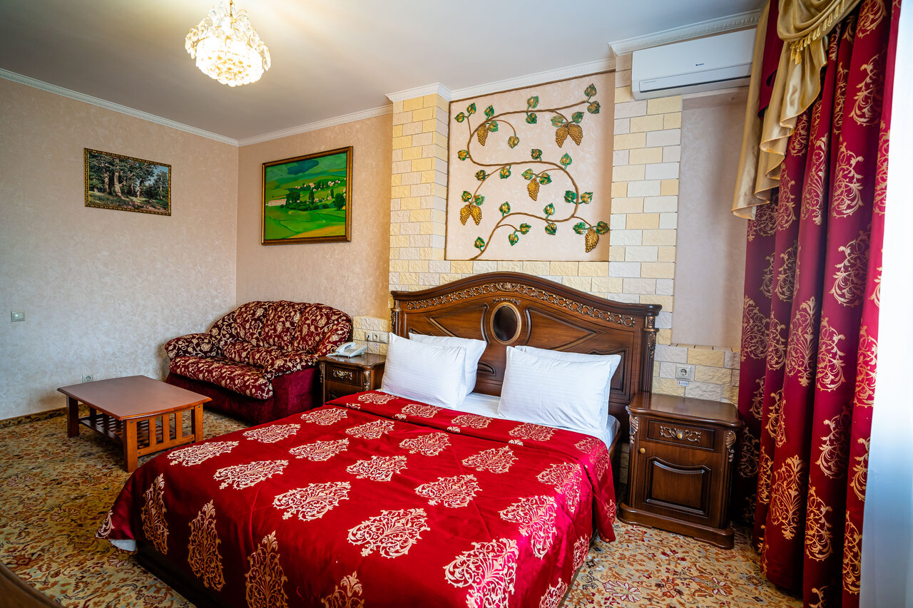 Прежде чем заселяться в этот отель всё взвести сначало. Отель Аля армянский пафос, ещё тех 90. В номерах прохладно, сантехника убитая. Мы проживаем большой командой так всё питание по ложечке, если бы Вы видели в какой посуде первое подали, у меня кот больше кушает. Чай наливали в бумажный стакан по половине. У этого отеля должна быть одна ЗВЕЗДА, не более.