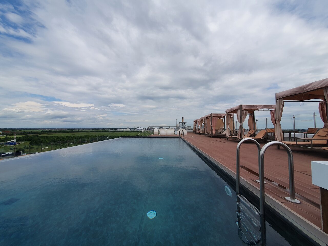 Отель неплохой. Из плюсов — бассейн на крыше, спа зона с банями, фитнес центр, парковка хорошая. Из минусов — в номере дышать не чем, а если открыть окно гудят блоки кондиционеров, на полу в ванной были пятна толи крови толи непонятно чего, ресторан небо плохой, музыка на крыше орет что друг друга не слышно, лежаки возле бассейна платные и без зонтиков.