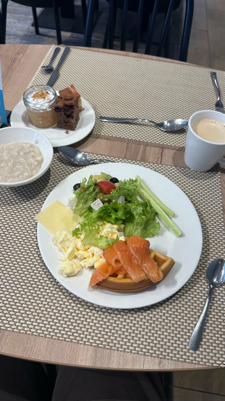 Хорошие завтраки на различный вкус, даже присутствует игристое вино. Комфортные номера .Персонал вежливый и заботливый. В номере тихо ,никакие звуки снаружи не проникают. Из недостатков (это в моём случае) не смог найти зарядное устройство для смартфона, свою зарядку забыл дома .