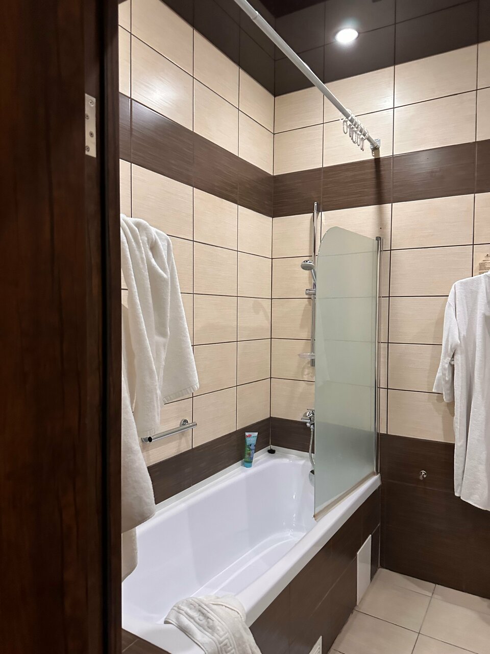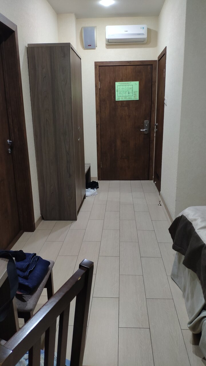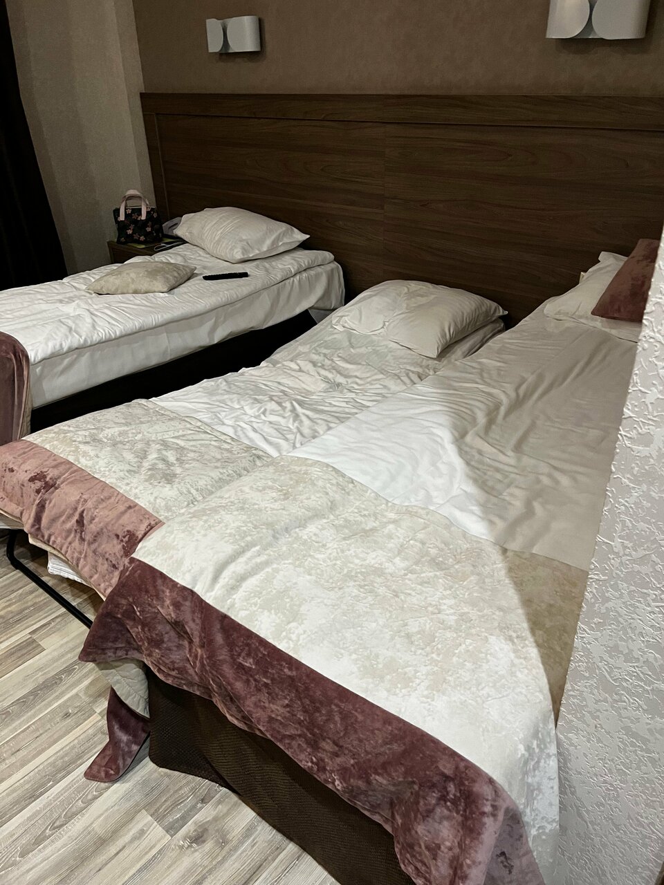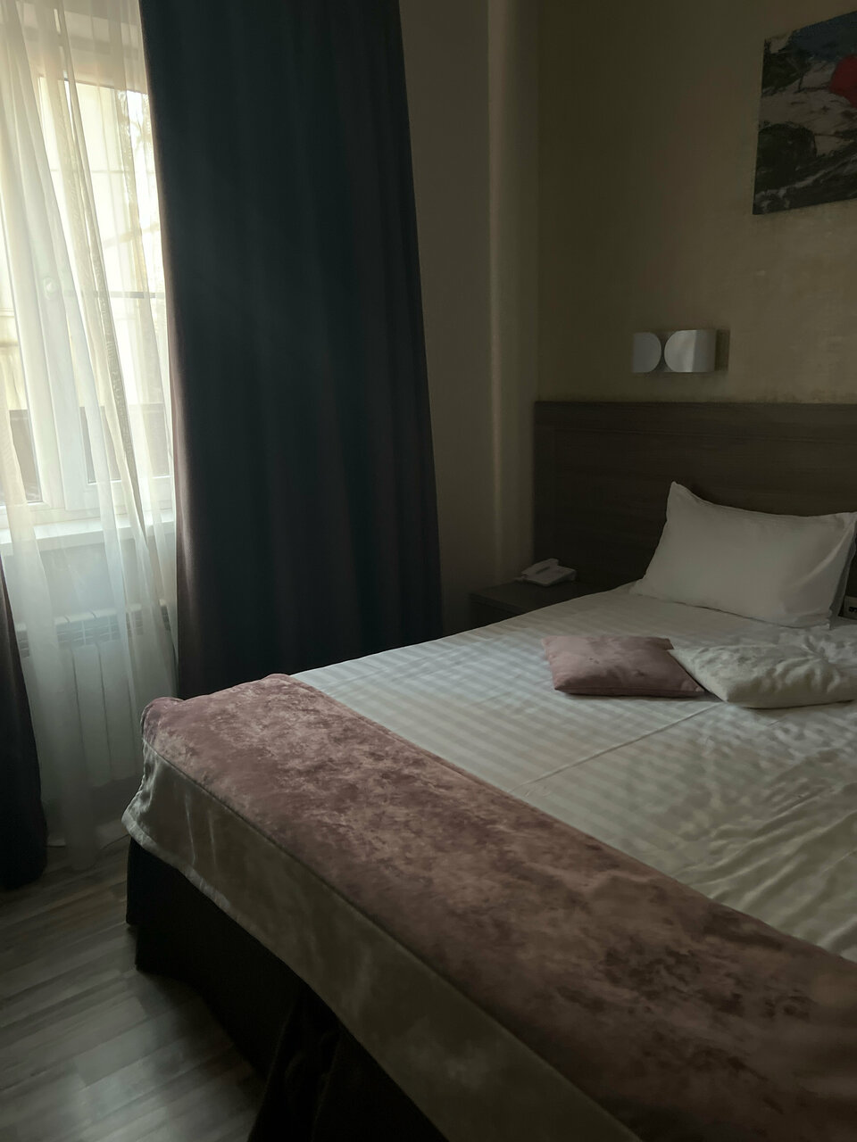 К персоналу претензий нет: администратор вела себя очень вежливо и внимательно. Но учтите, что в стандартных номерах тапочки платные. Завтрак ужасный, яичница была горелая. За 3200 можно было бы завтрак получше сделать. В минибаре не было простой воды, только газировка, а кулер на этаже был пустой. В самом номере ничего примечательного. На одну ночь пойдет, но не больше.