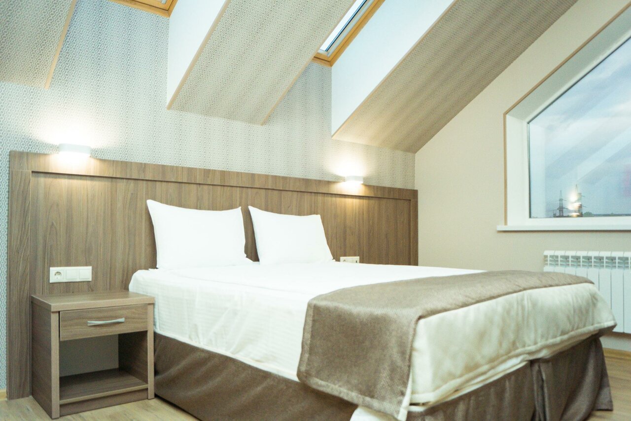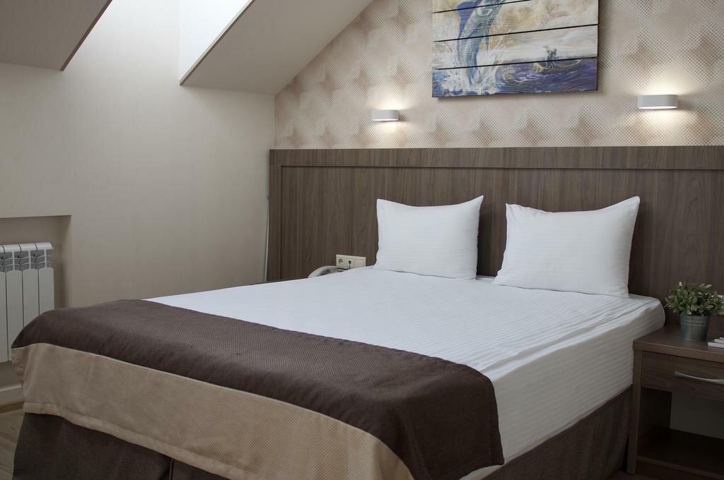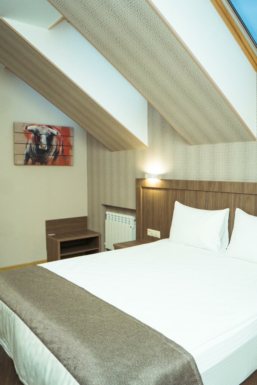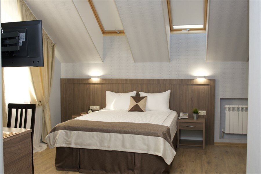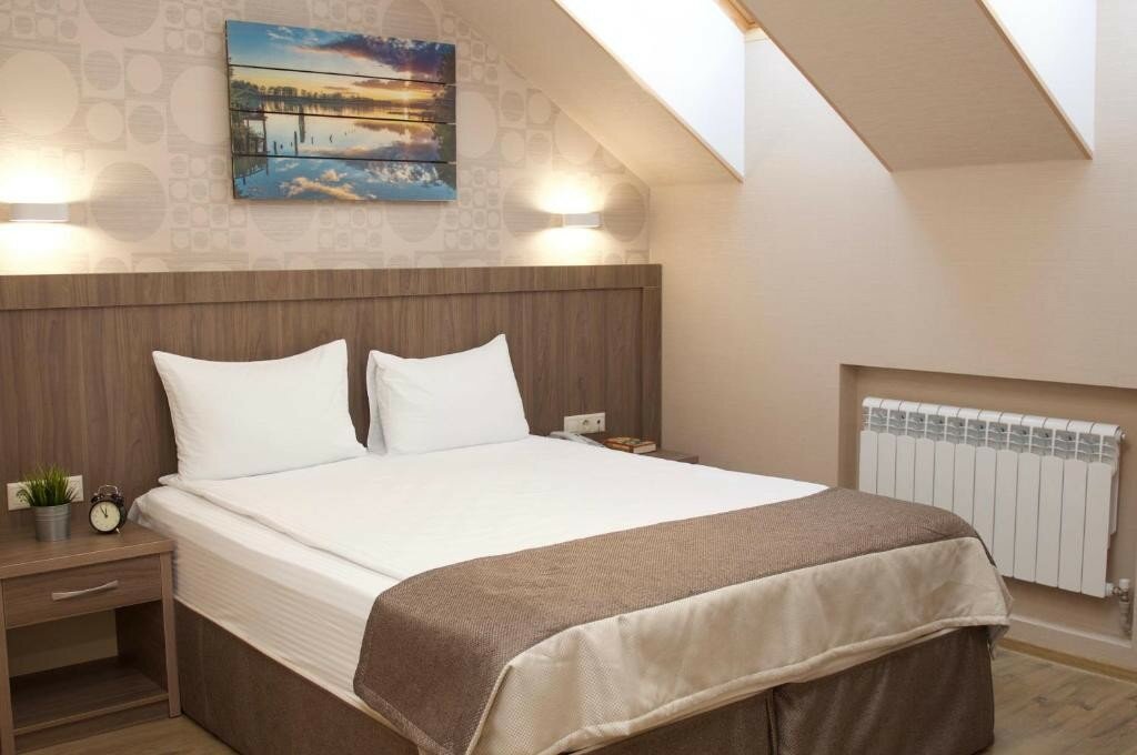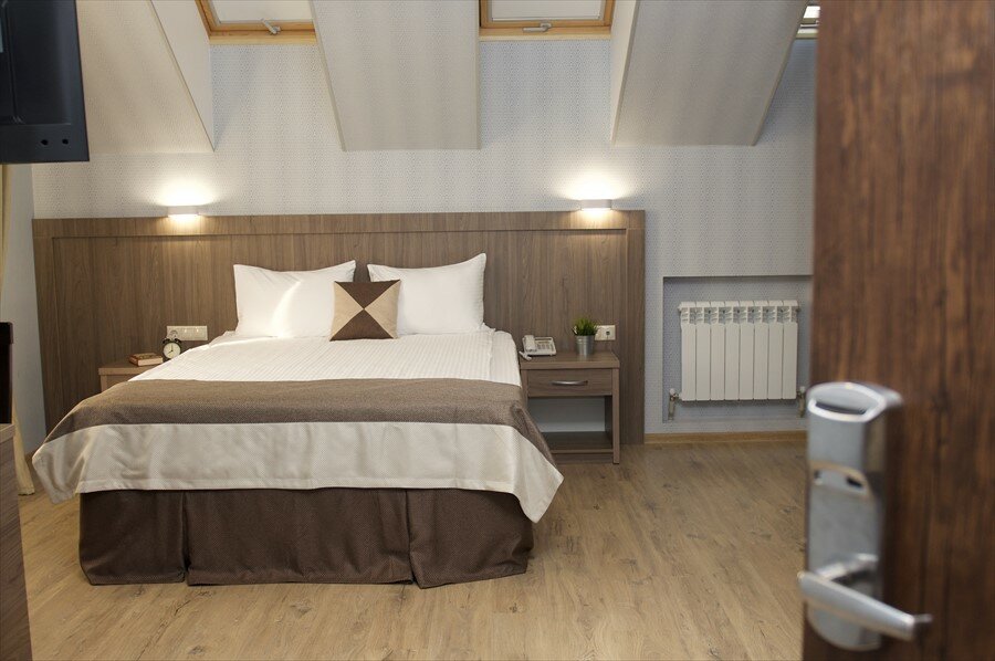 достоинства - много парковочных мест, есть своя парковка за воротами - отличный дизайн внутри отеля - плюс минус хорошие номера недостатки - не берите бизнес на 4-ом этаже, боковые окна не открываются, а для свежего воздуха надо чердачный люк открывать, окно такое ))) по промику в яндекс.путешествиях отдал 2900р, больше платить не стоит