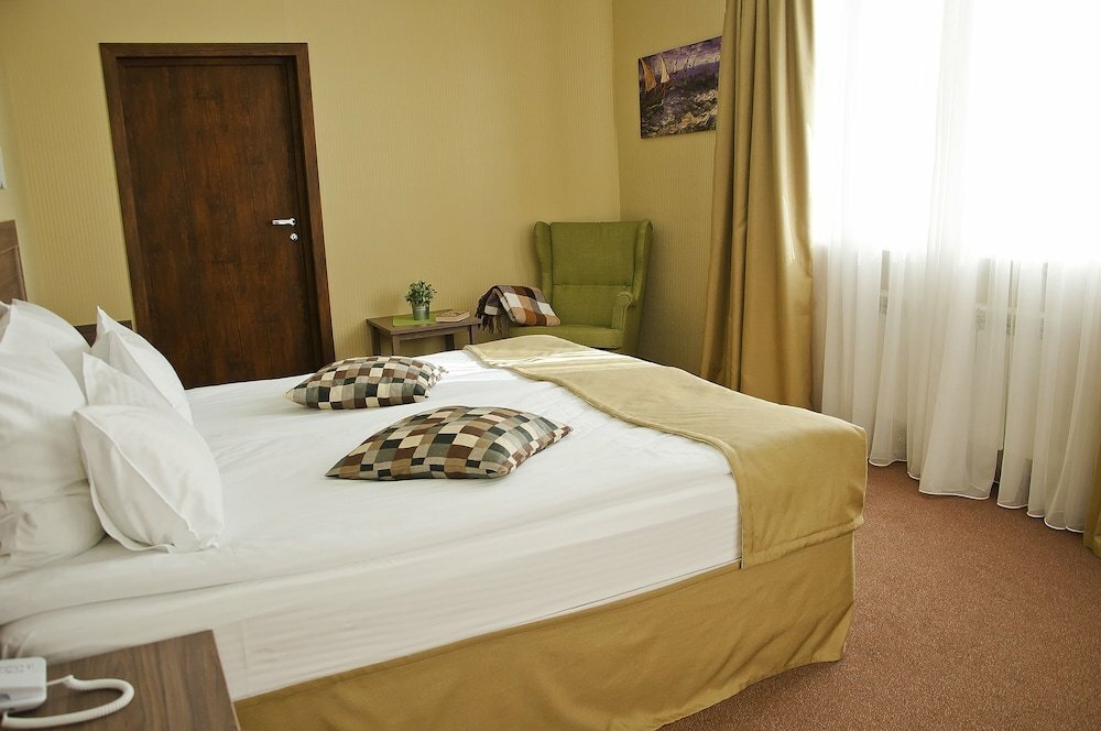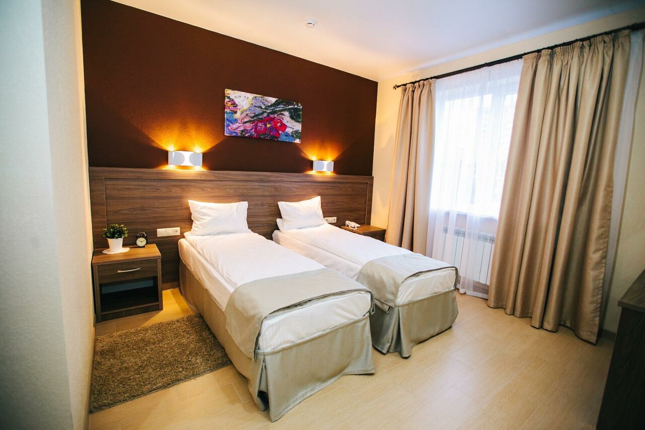 Двухместный номер с одной двухспальной кроватью или 2 отдельными кроватями, мини-баром, кондиционером, телевизором с плоским экраном, телефоном, и собственной ванной комнатой.