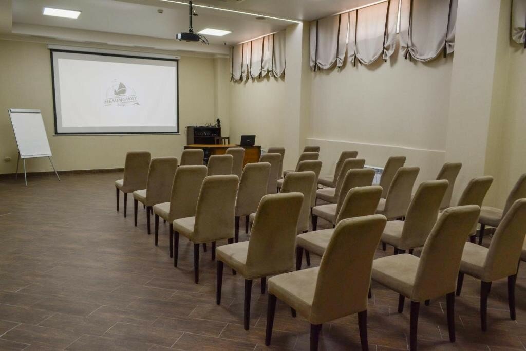 Высокоскоростной оптоволоконный Интернет; Бесплатный WI-FI; WLAN интернет; Ноутбук и МФУ; Высококачественный проектор HD (131 дюйм); Презентер; 2 беспроводных микрофона; HD камера для проведения конференц-связи; Профессиональное аудиооборудование (об