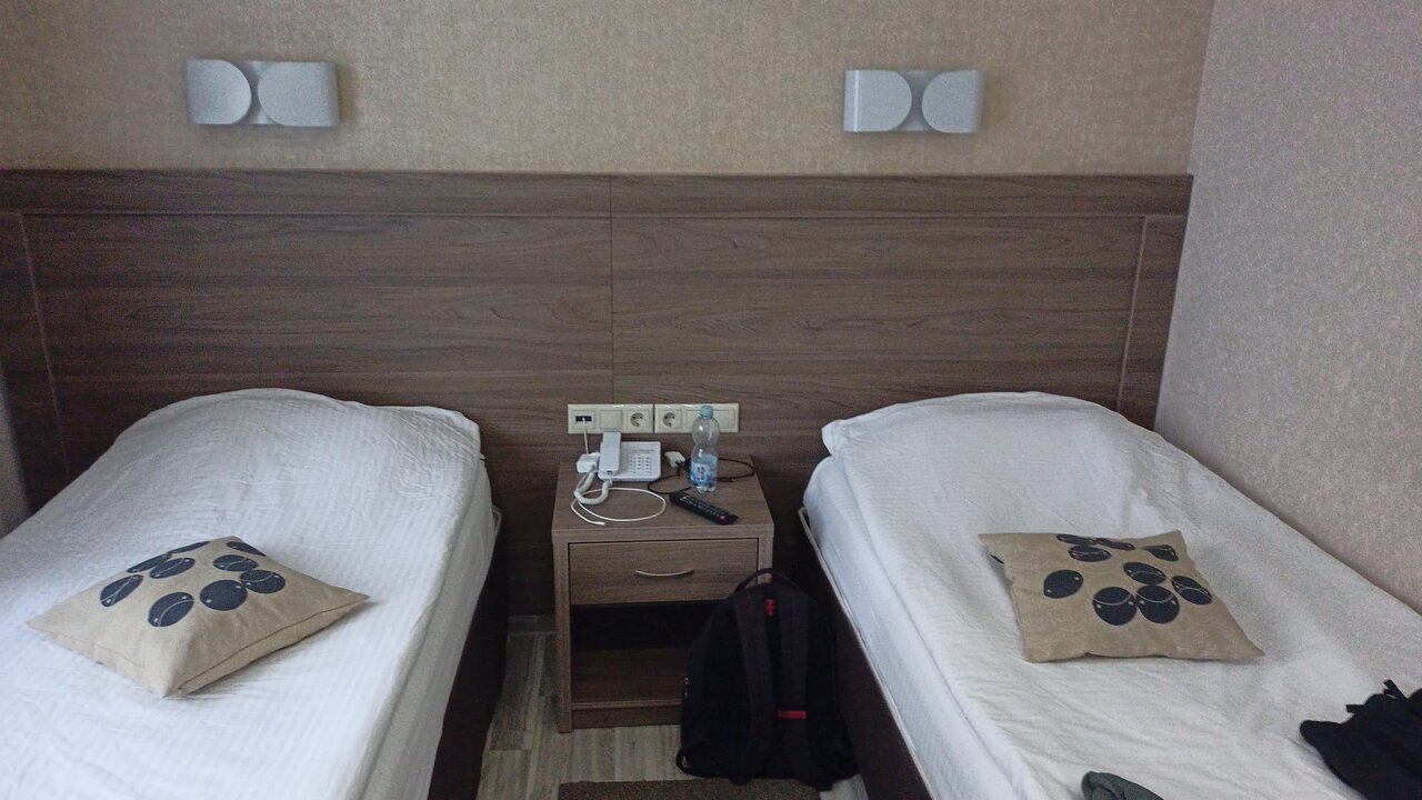 Больше, чем на 3 балла, гостиница не тянет. Что хорошо: расположение, хороший проект, относительно новая (во всяком случае, так показалось). Что плохо: 1) номер был ‘потрепанный’ (отваливающиеся вешалки, подставка под мыло, отваливающиеся решетки под слив в душевой кабине, неработающая вытяжка в санузле, из-за чего тянуло соответствующими запахами из санузлов снизу/сверху); 2) холодильник жутко гудел, пришлось его отключать на ночь; 3) подушка — это мешочек с комками синтепона; 4) парковка маленькая и на ней паркуется кто угодно (жители соседних домов, возможно), нам пришлось самостоятельно искать, куда припарковаться (хотя в заказе указывали, что нужна парковка); 5) уборка плохая (в тумбочках были какие-то пыльные бумажки, унитаз — с желтым налетом; 6) сервис — с атмосферой советских гостиниц (когда при выезде сотрудник идет пересчитывать подушки и полотенца); отношение к гостям соответствующее.