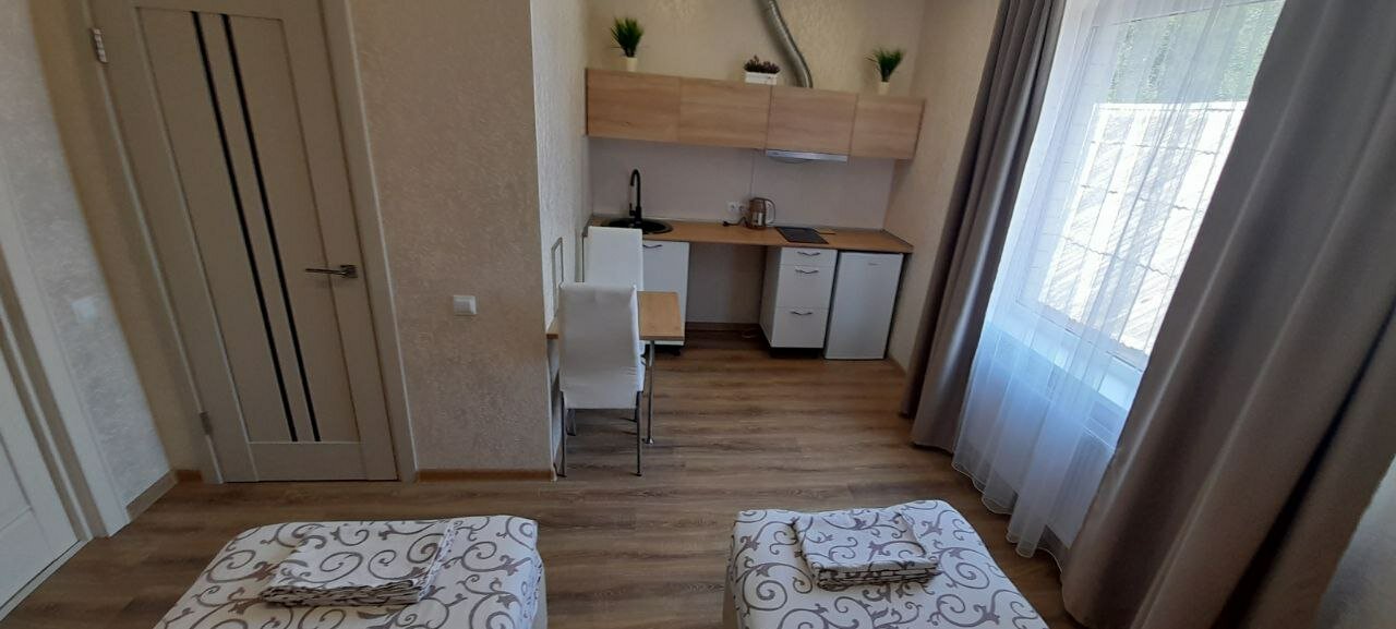 Чисто , уютно , отличный ремонт, хозяева не беспокоят от слова совсем, номер с кухней и холодильник, кондиционер, санузел в номере, идеально.