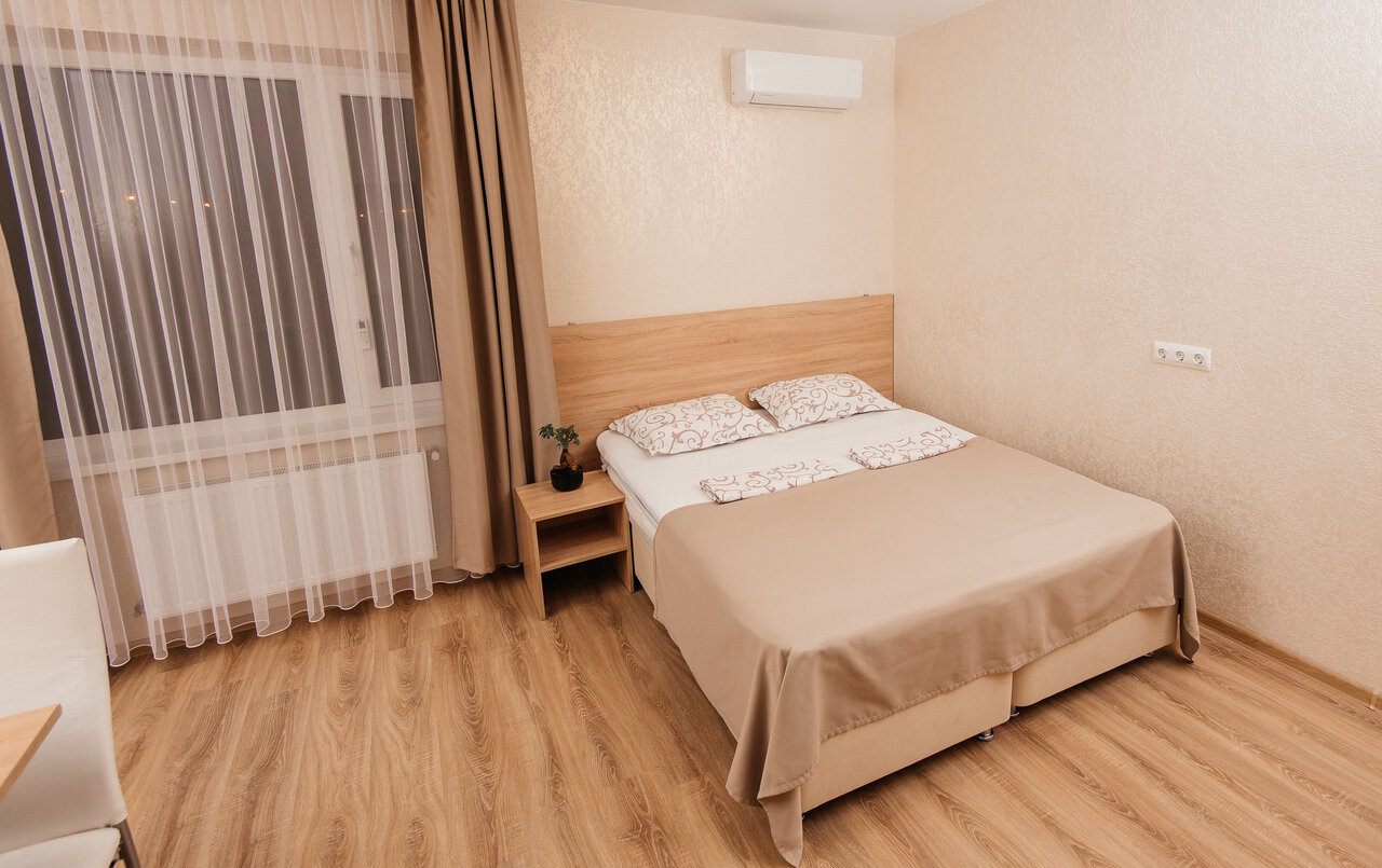 - Доступная цена за качество.; Тишина.; Наличие кухни и холодильника в номере.; Хороший ремонт.; Кондиционер в номере.