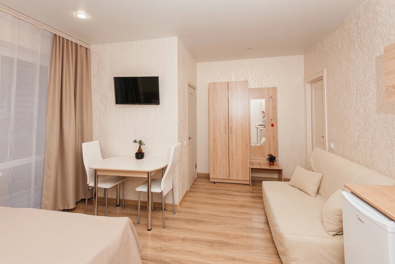 Очень чистые, уютные апартаменты! Удобное расположение, центральный округ. Вокзал очень рядом, за минут 10 дошли. Цена очень приятная за такие условия. Кухня и вся посуда имеется в апартаментах. Можно приготовить завтрак и даже ужин. Советую командировочным) Спасибо приветливому персоналу, все расскажут, во всем помогут. Оценка 10/10!