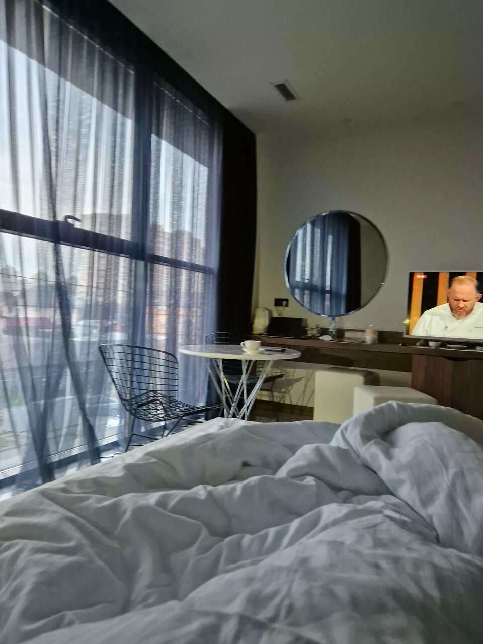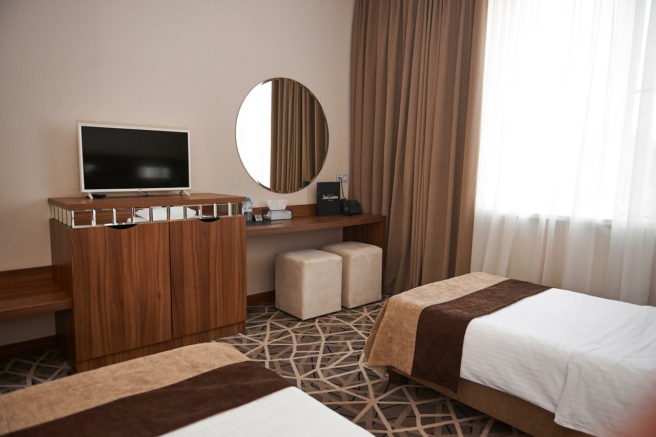 Отличная гостиница. Оставались на одну ночь. Номер просторный чистый, современные сенсорные выключатели, все удобства есть( фен, холодильник, кондиционер). Ну и изюминкой нашего номера было окно в стене между комнатой и с/у. Интересное дизайнерское решение, очень оригинально.