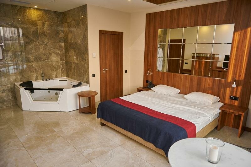 - Полумрак в номере с джакузи (много зеркал, некомфортно для длительного проживания)