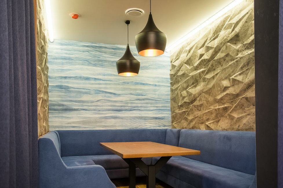 Очень приятное место с точки зрения интерьеров и очень не спокойной с точки зрения гостей. Ночью шумели соседи, ни Охрана ни Ресепшен сделать ничего не могли. Утром пьяные постояльцы в кафе бурагозили. В общем если бы не интерьеры можно было бы поставить 0.