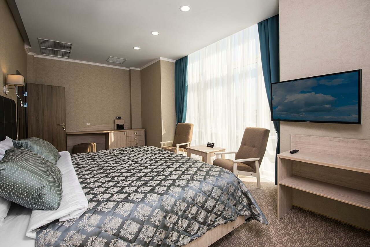 Просторный номер повышенной комфортности для одноместного или двухместного размещения. Уникальный дизайн номера удачно сочетает в себе элегантность классики и функциональность современности.