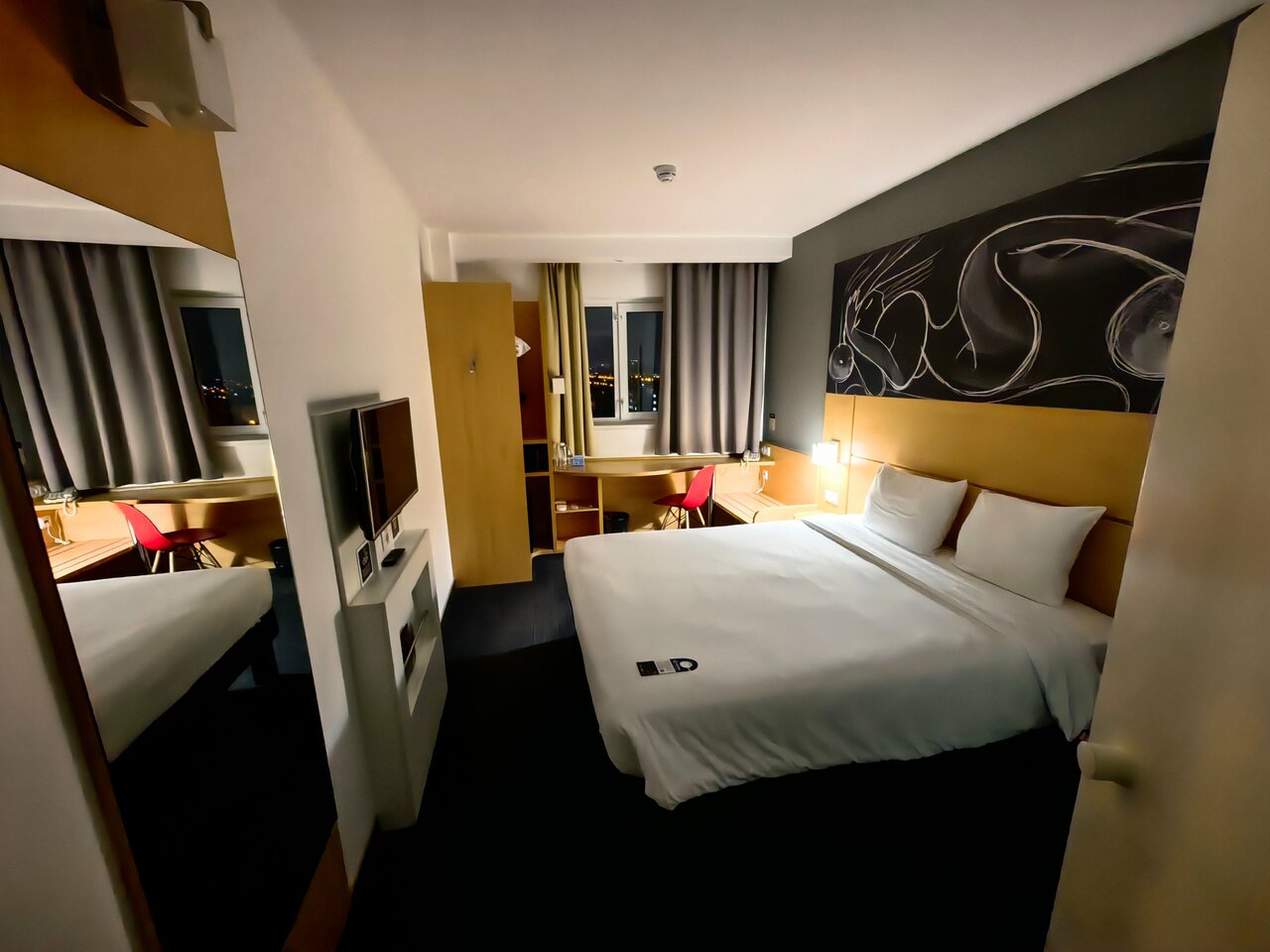 Отель ИБИС — бывшая французская сеть, выкупленная российским менеджментом. Вцелом условия проживания соответствуют стоимости, правда вещи особо не разложить, вешолок ограниченное количество, чайник и кружки лучше иметь с собой, хороший шведский стол, приветливый ресторанный персонал. Две звезды снимаю за вымогательство денег горничными за выполнение своих трудовых обязанностей, причем поощряемых руководством отеля. Данное действие со стороны персонала рассматриваю как беспардонное и бестактное, учитывая что за проживание было оплачено в полном объёме.