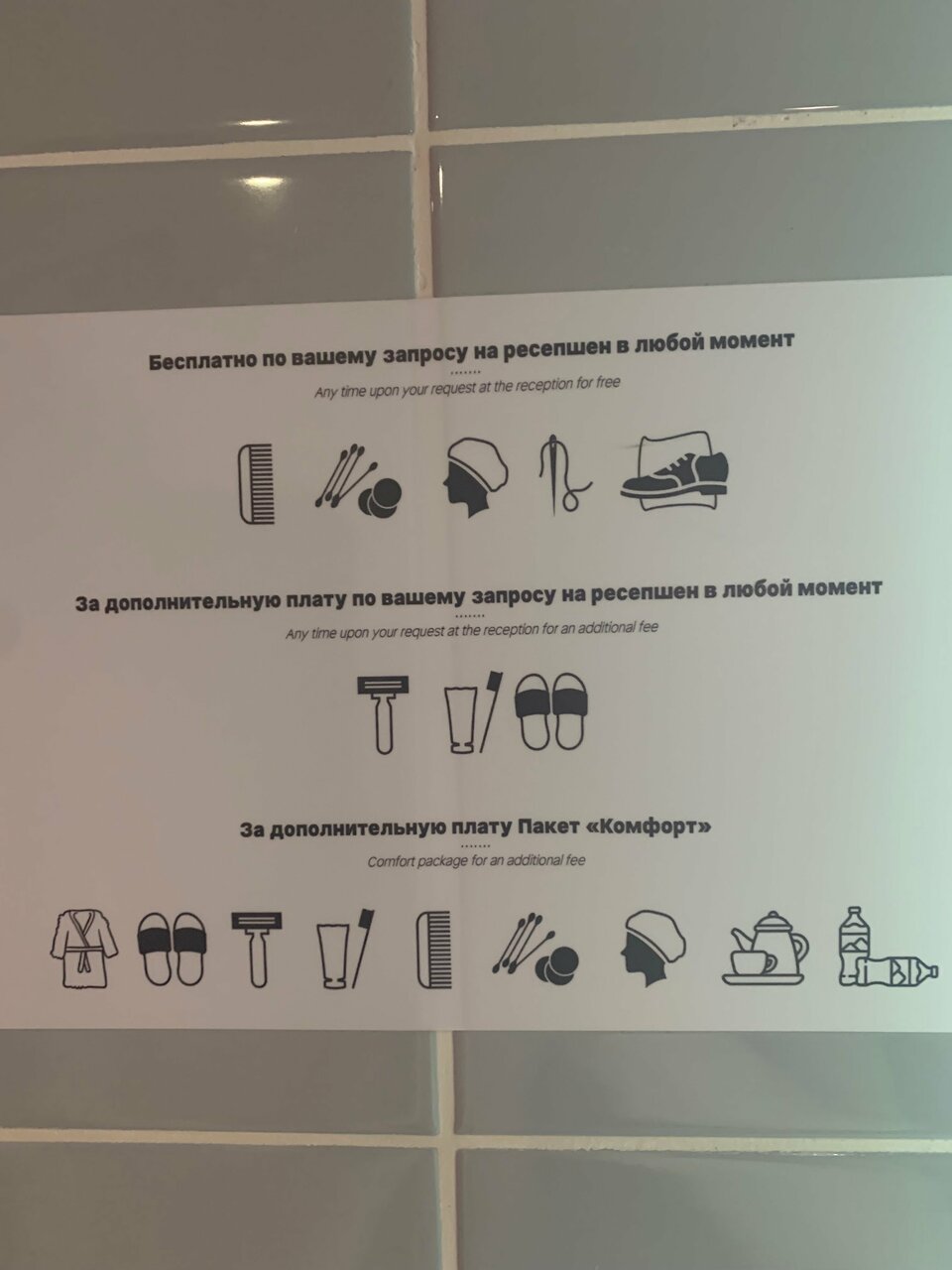 - Минимально необходимое в номере (полотенца, гигиенические принадлежности)