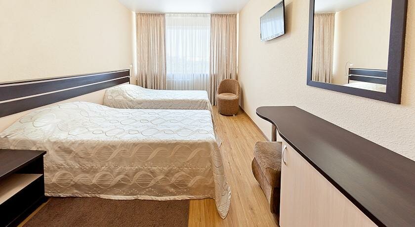 Номера старые, классика. Кто был в советских гостиницах поймет. Но очень чисто. Вообще, все решает расположение. Это географический центр Краснодара близ Александровской арки и рядом с ФудМоллом. Для приездаьна пару дней — самое оно!!!