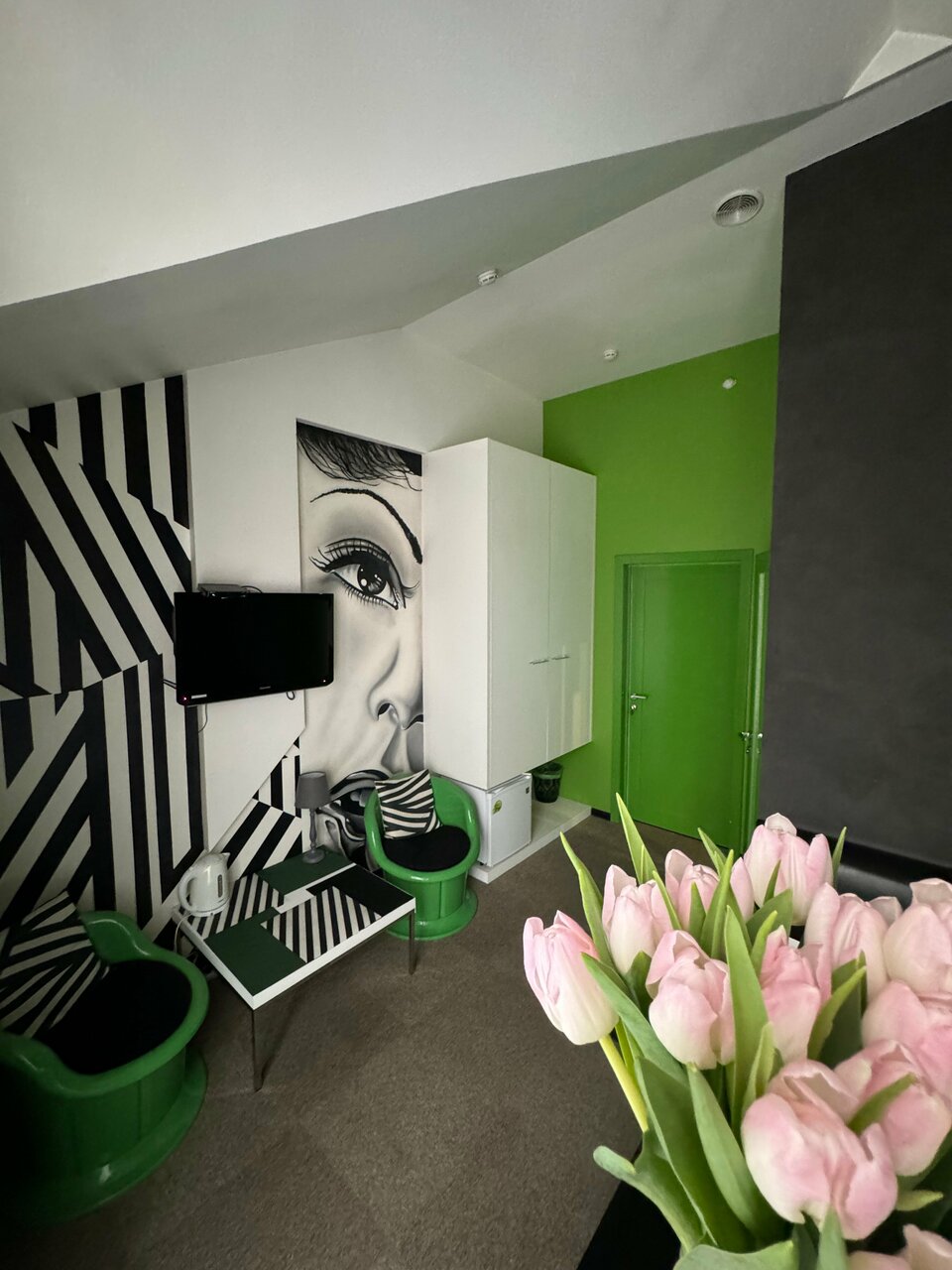 Отель с интересным дизайном, сделано со вкусом, как будто в Арт-музее находишься Случайно выбрали этот отель и остались под супер приятным впечатлением. Рада, что остановились в этом мини-отеле Краски Спасибо внимательному администратору Так как заселились поздно, но нам всё равно подробно рассказали, показали и т. д. Одним словом пушка