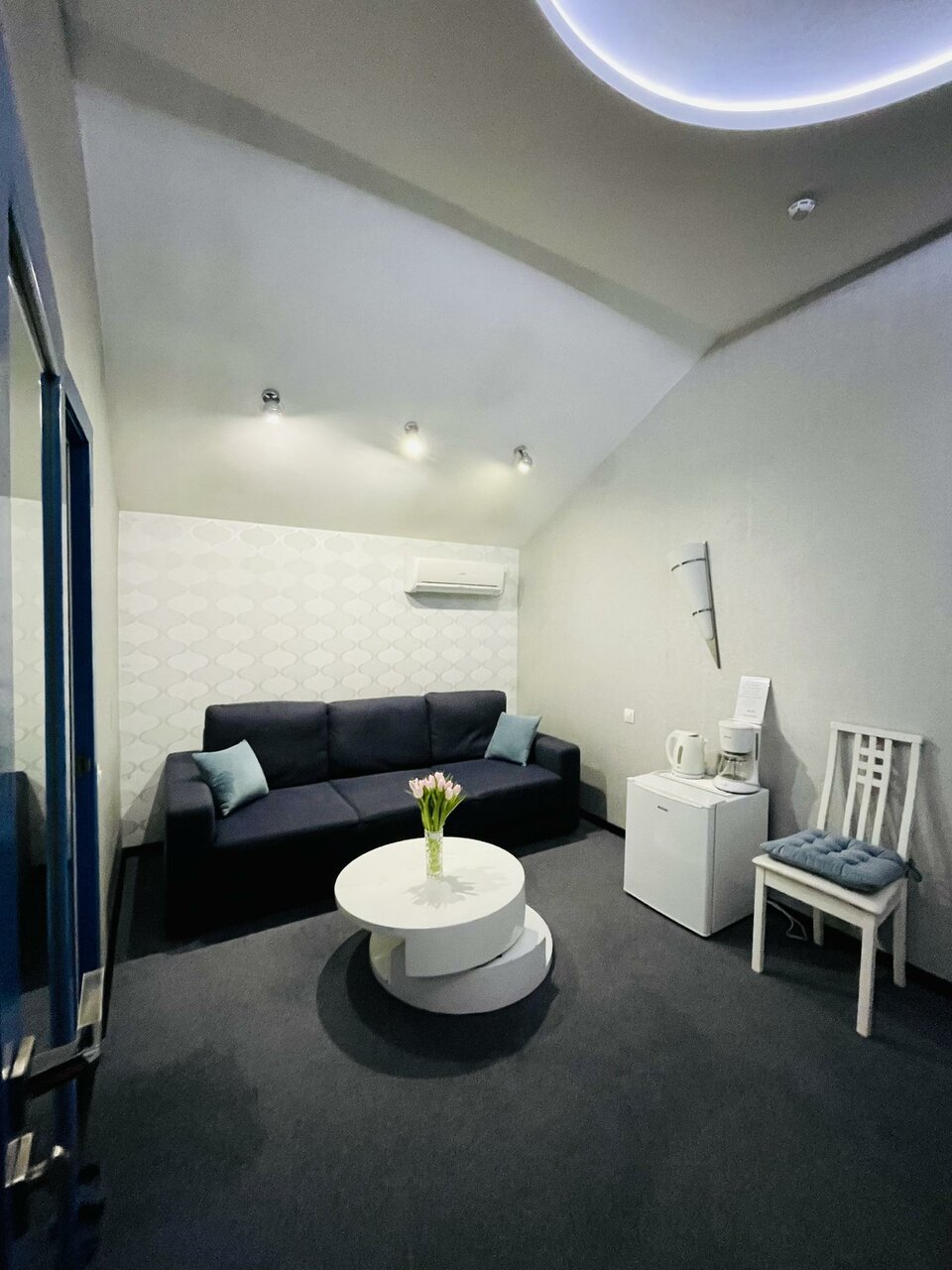 Прекрасная обстановка, все со вкусом для любителей сочных красок, мне понравилось. Ремонт свежий, порядок, есть всё необходимое, если чего-то нет в номере, то всё дадут очень приветливые сотрудницы на ресепшене. Отличная сауна, быстро греется и контрастный бассейн, вместительная зона отдыха, музыку. В шаговой доступности ТЦ Галактика и много магазинов вокруг, есть парковка. Всё это по очень приемлемой цене.