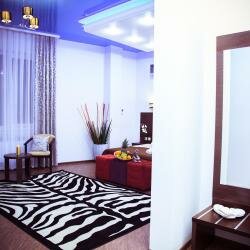 Стильный однокомнатный номер площадью 35кв.м с интересной планировкой и современным интерьером. В номере: Просторная двуспальная кровать (160*200), кожаный диван-кровать.