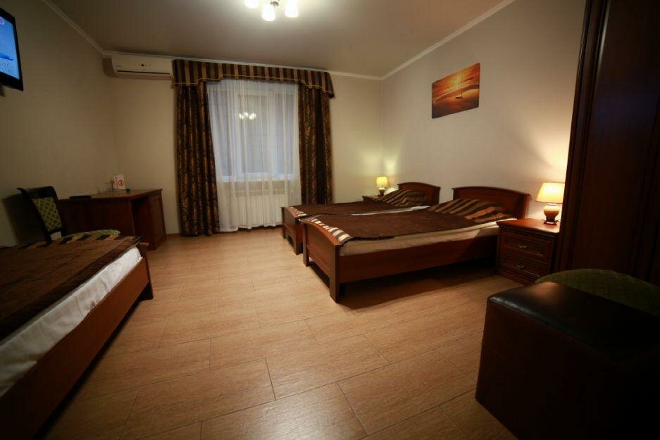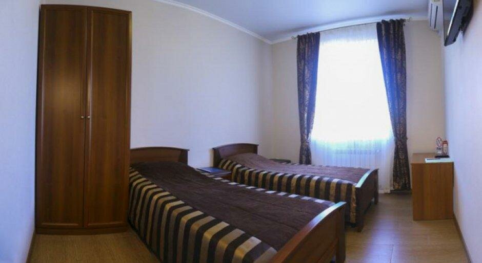 Неплохой вариант для трансфера через Краснодар. Парковка маленькая — надо успеть занять место или договориться, чтобы забронировали (одно место навечно занимает сгнивший Ваз на спущенных колесах). Персонал радушный. Номер в целом чистый, но с электрикой беда — лампы искрят и мигают, один выключатель не понятно для чего, в санузле работает половина освещения). Гостиница расположена одинаково удобно как для аэропорта, так и для окружной автодороги. Район тихий, никаких развлечений по близости нет. Свое кафе очень недурное!