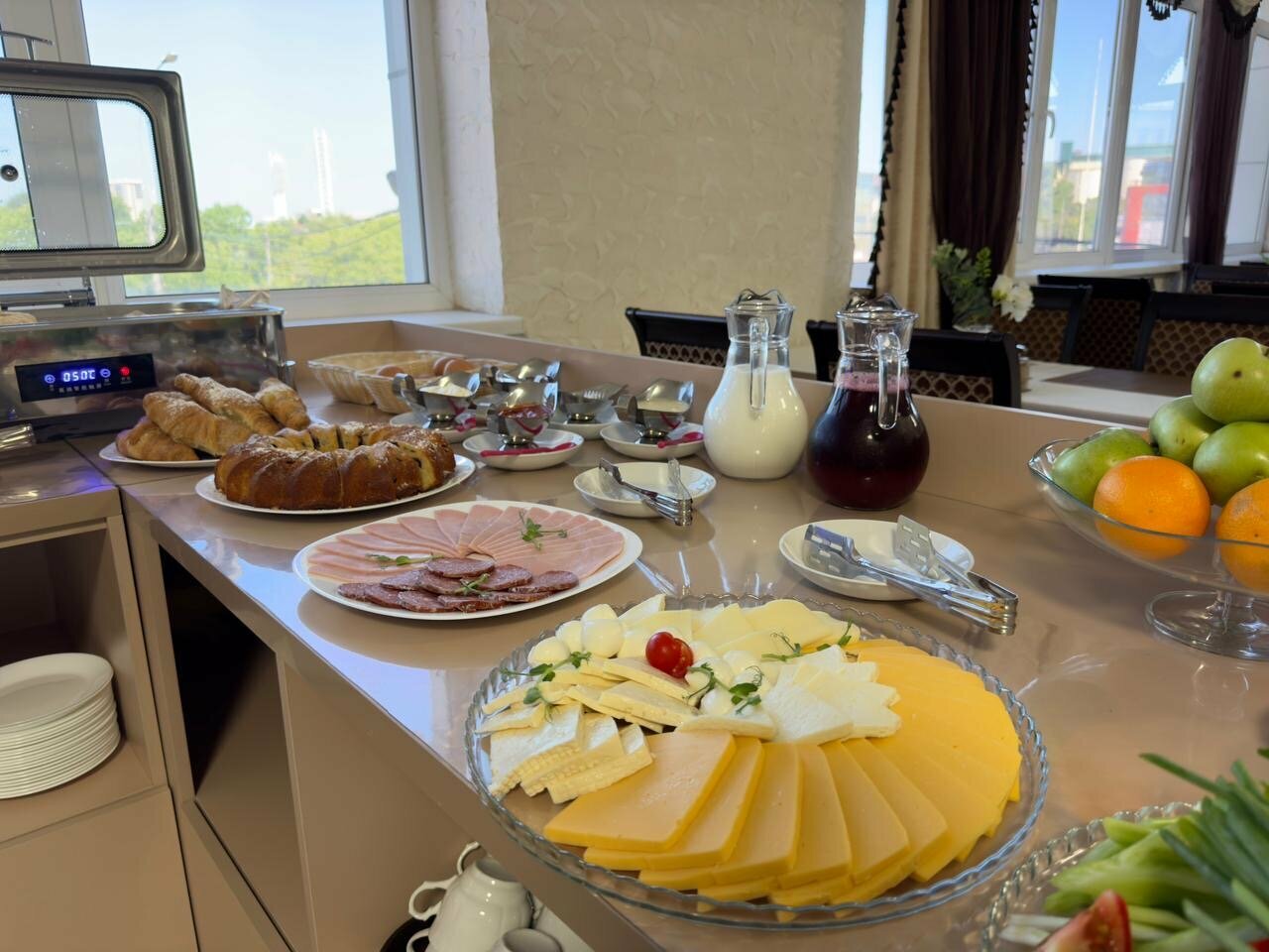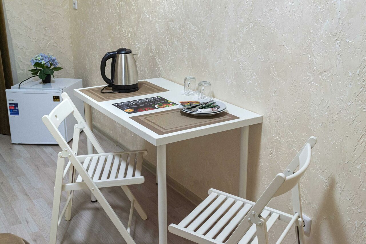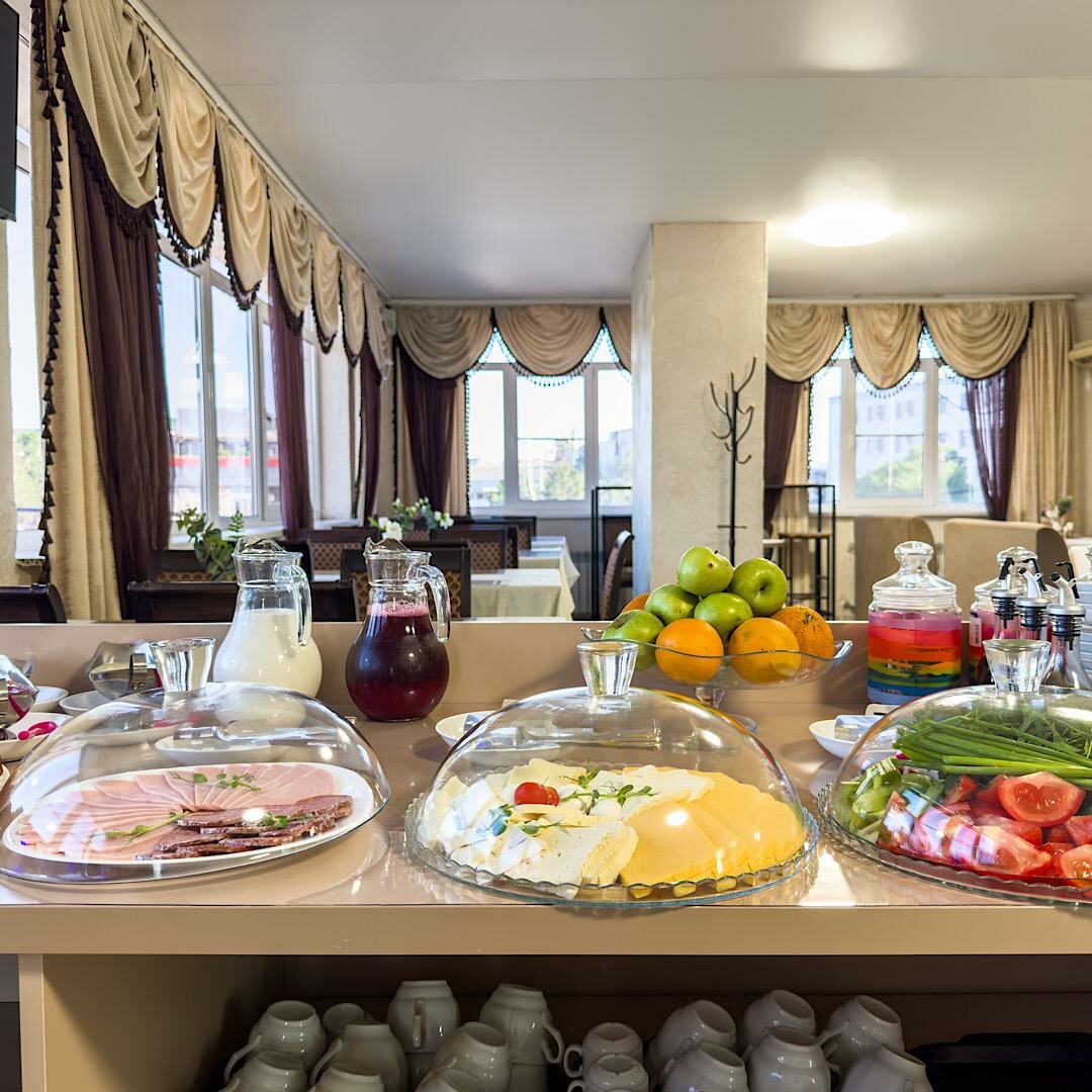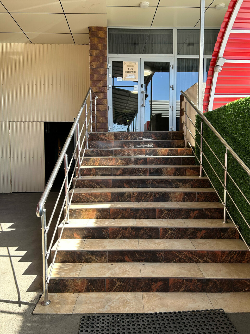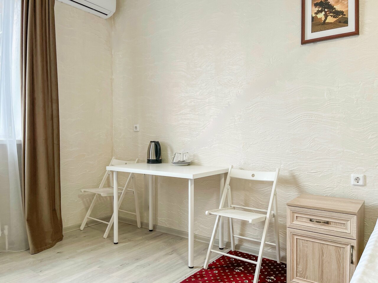 Заказали номер на сайте Яндекс путешествия, что очень удобно и помогло сэкономить. Сняли номер на двоих с ребёнком. Ехали проездом на море. Номер чистый, просторный. Огромная двуспальная кровать и односпалка для ребёнка. Белоснежное бельё, косметические принадлежности, полотенца, фен. Столик, стулья, чайник, чай, кофе. Холодильник и телевизор работает. В отеле есть кафе, что удобно, работает до 9:00. Попали на ужин- борщ на 5+. Спасибо повару! Есть всё необходимое на этаже гладилка с утюгом, кулер с водой. Кстати имеется парковка для авто. Персонал вежливый.
