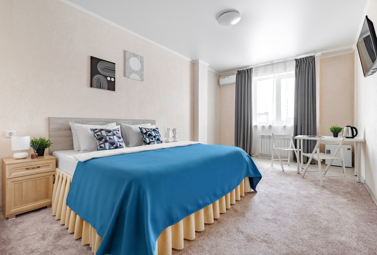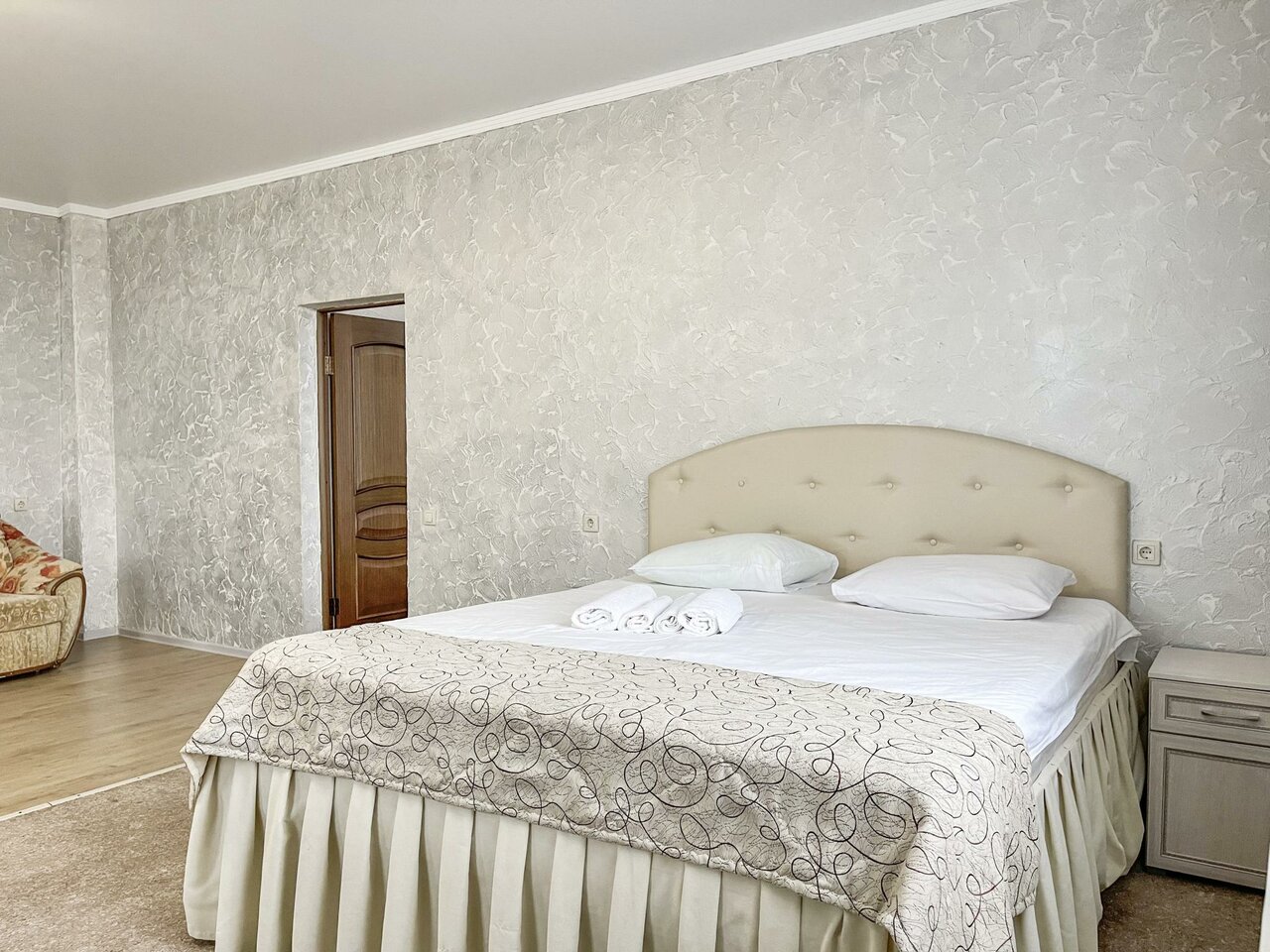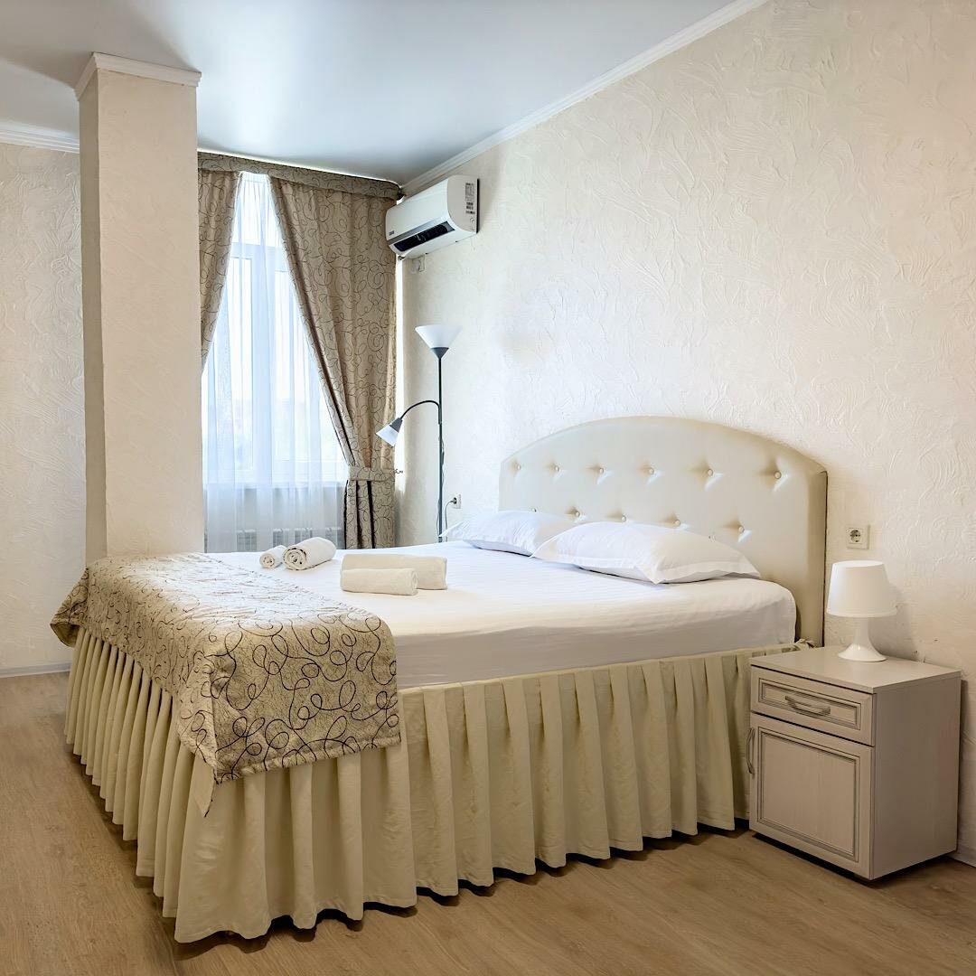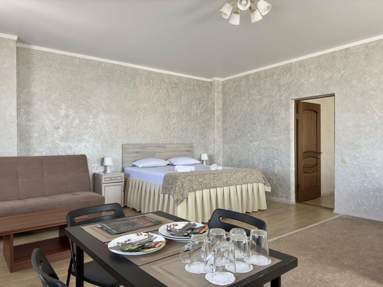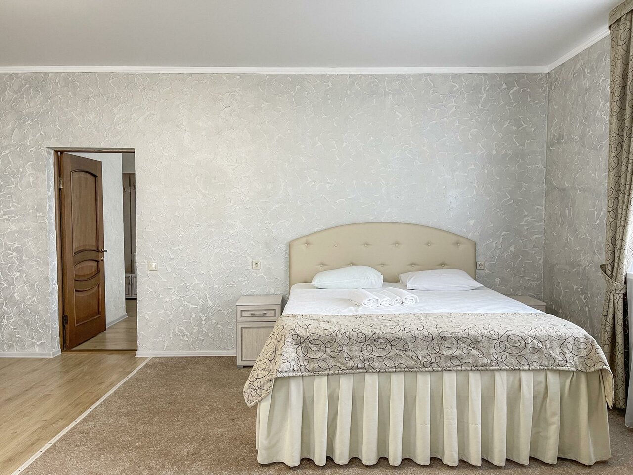 Джуниор Сюит . Улучшенный стандартный номер с двуспальной кроватью и бесплатным дополнительным местом на 3 человека.В номере есть все необходимое для проживания:Набор полотенец и косметикиТапочки (по запросу гостя)ФенХолодильникТелевизорШкаф