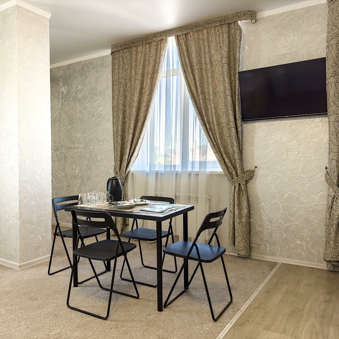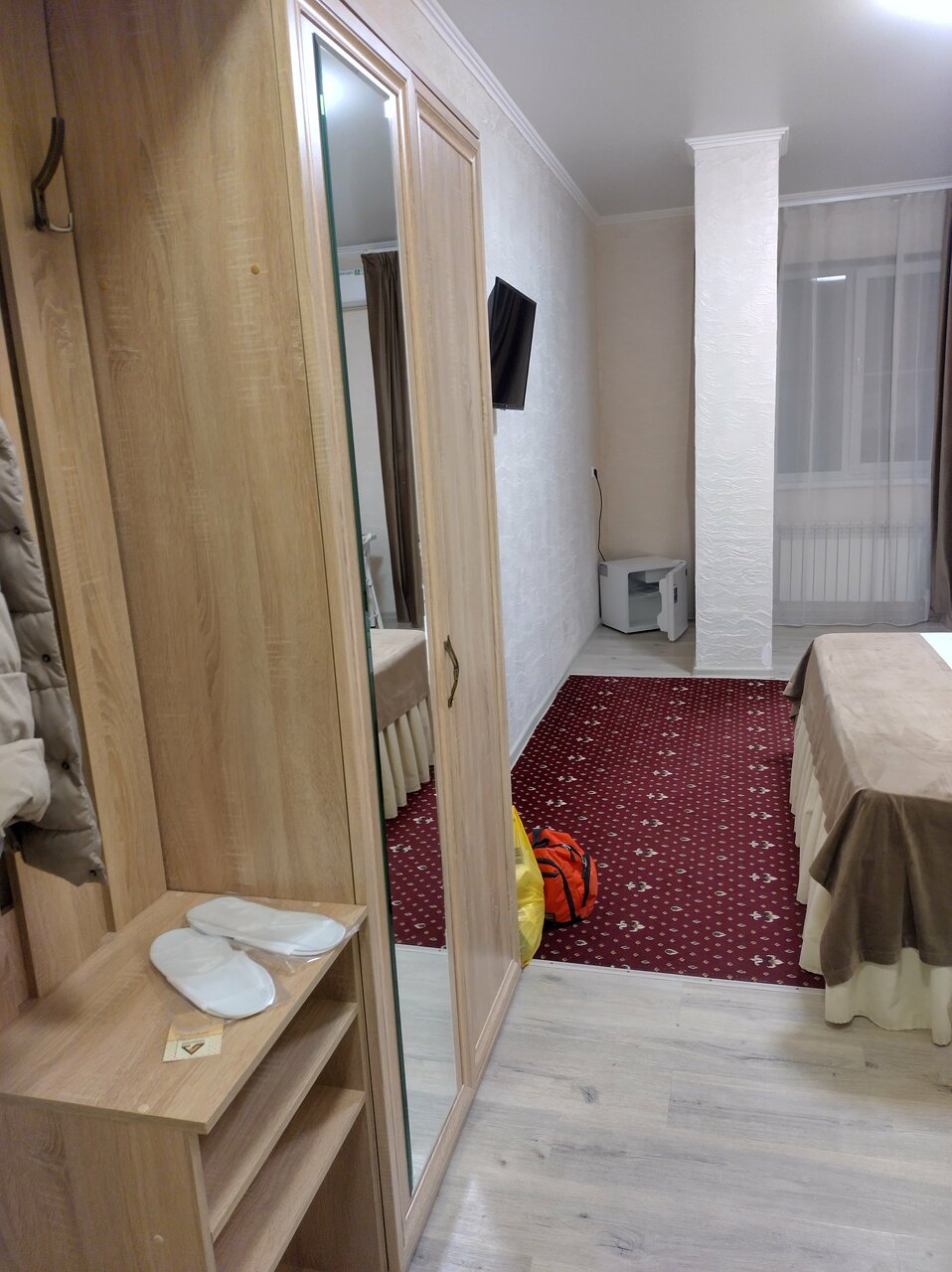Приехали с дочкой на соревнования. Номер впечатлил, чисто , подушки и матрас это просто огонь , высыпаемся тепло, в номере есть мини холодильник и чайник. А какая же тут вкусная кухня мммм. Спасибо Приедем в следующий раз всей семьёй!