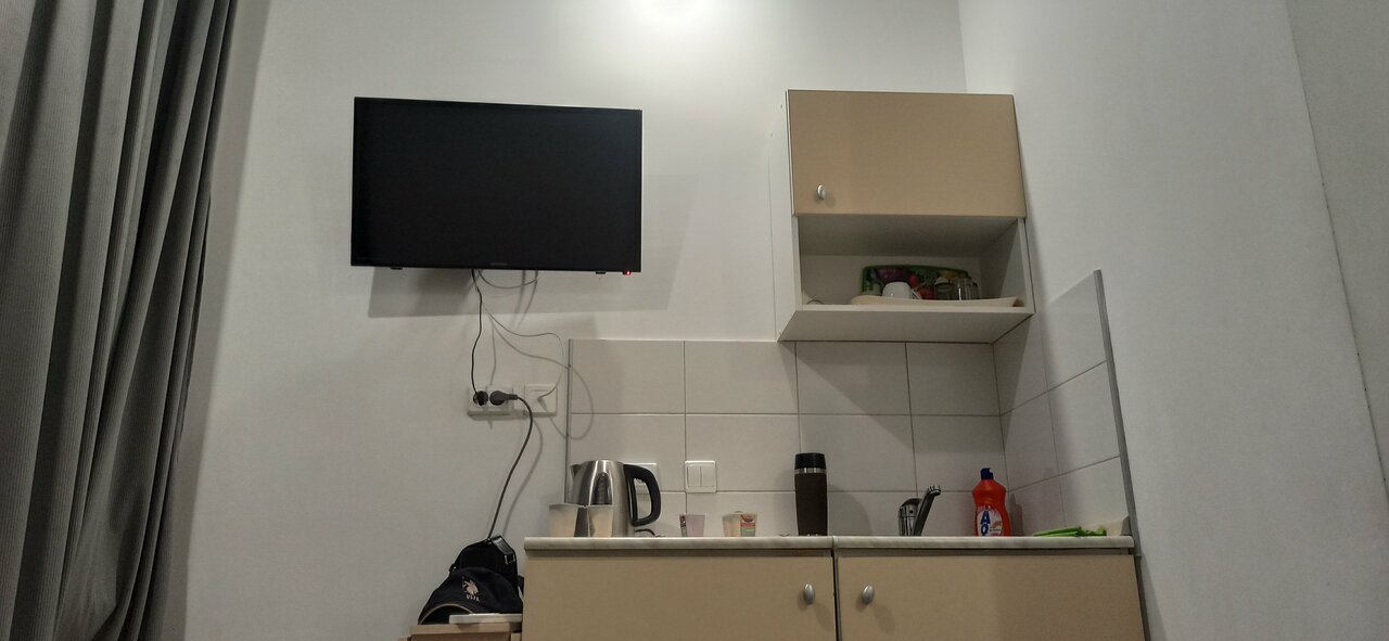 Гостиница расположена в отличном месте , рядом парк , множество магазинов , не далеко самый дешевый коопрынок , поликлиника , комнаты , светлые , чистые, есть стиральная машина , микроволновка, сушилка для белья , гладильная доска , в комнатах есть плитка для приготовления , сковородка , посуда , рекомендую эту гостиницу