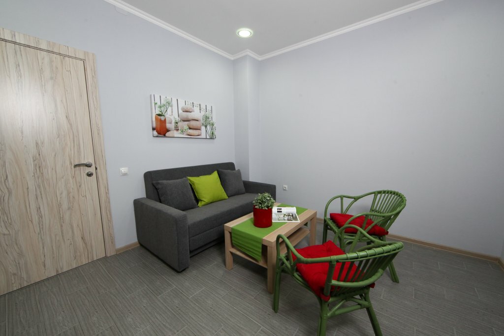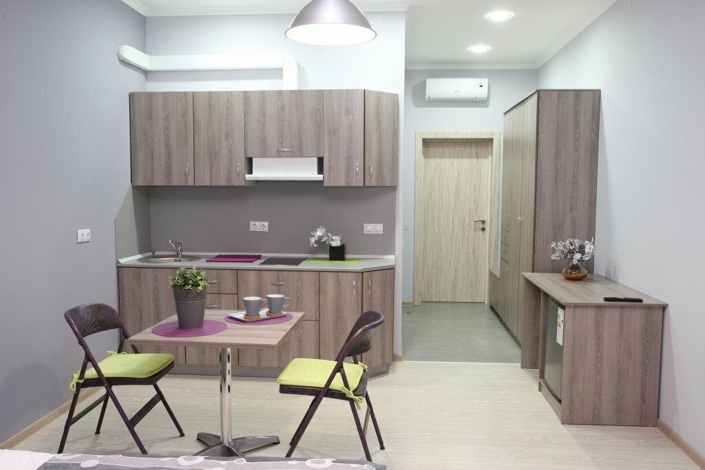 Сняли студию с кухней. В номере есть все необходимое: душ, фен, телевизор, холодильник, кондиционер, быстрый интернет. Персонал вежливый. Всем довольны.
