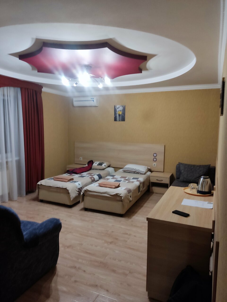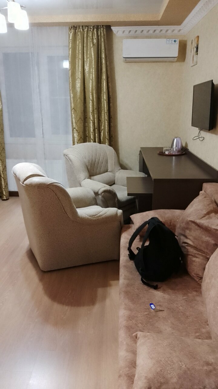 Номера большие и это единственный плюс. Кровать с продавленным матрасом, стенки тонкие, слышно как в коридоре ходят, кондиционер трещит всю ночь((( А кресла, которые в каждом номере, и они этим гордятся, грязные и страшные. Неприятное впечатление(((