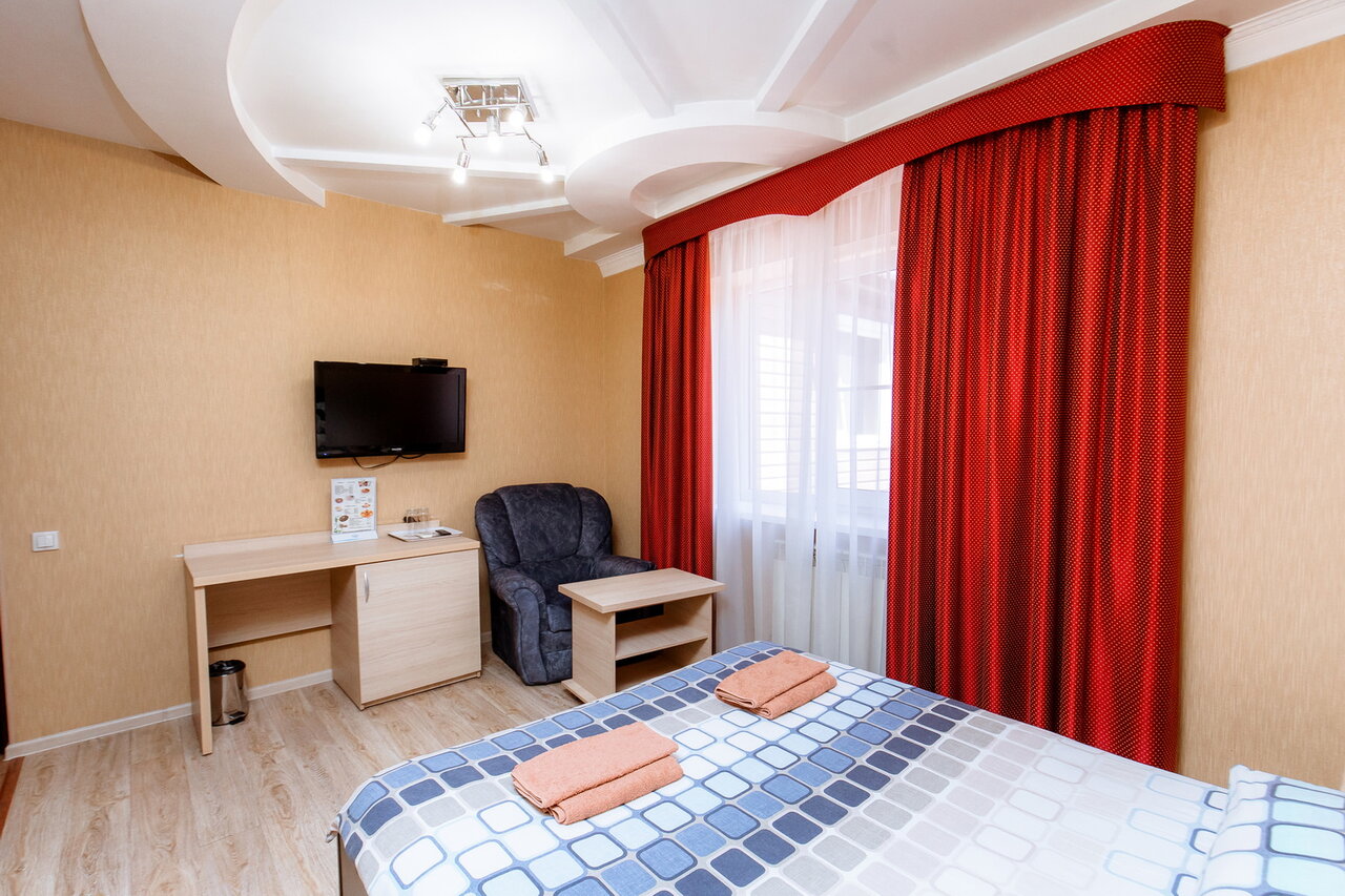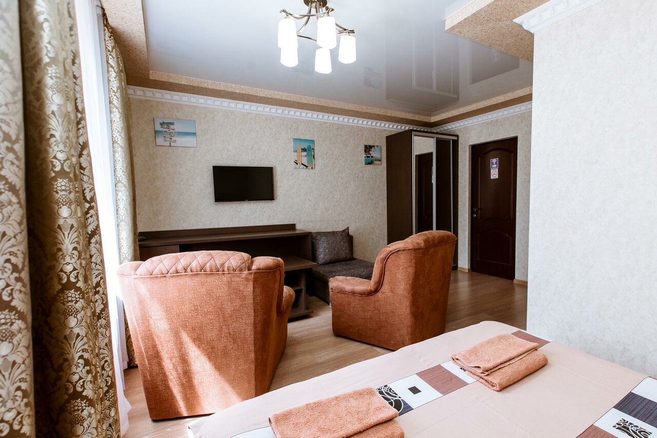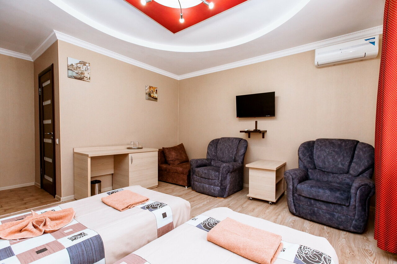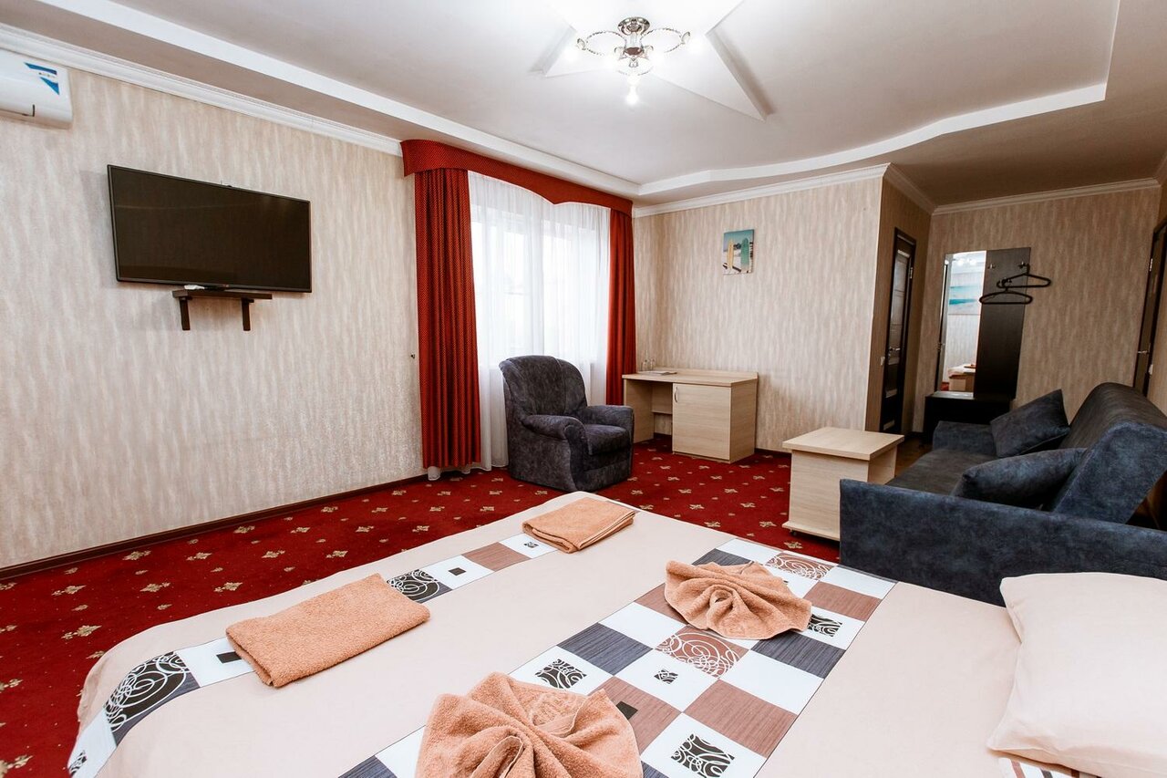 Тихий семейный отель удобно расположен недалеко от аэропорта и от трассы в частном секторе. Радует чистота и уют. В номере есть всё необходимое для комфортного отдыха.