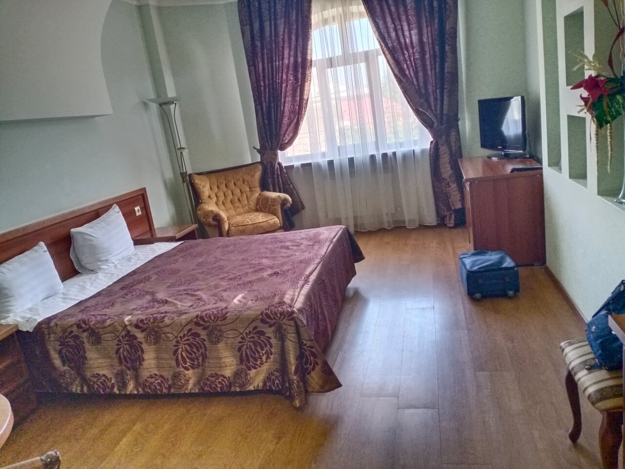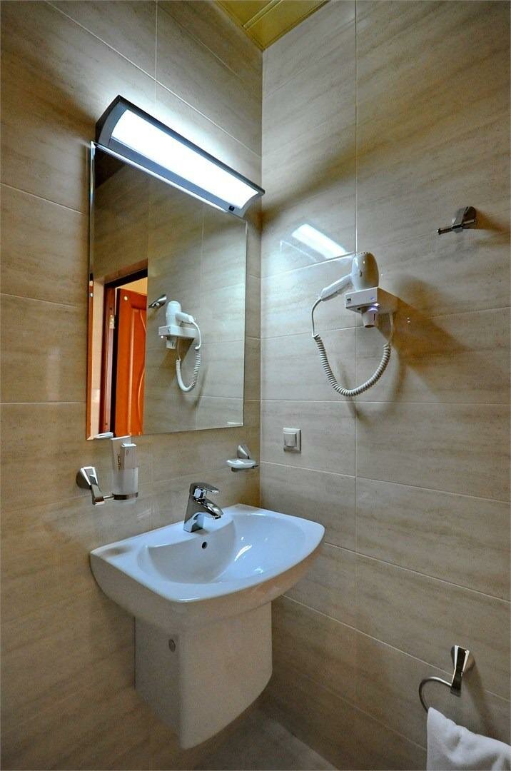 Когда то была хорошая гостиница,но время безжалостно и все требует ремонта.Сантехника лучше не дотрагиваться,чтоб не сломать.Кровать отвратительная(скрип на весь этаж),матрас ужас.Основное достоинство это цена.