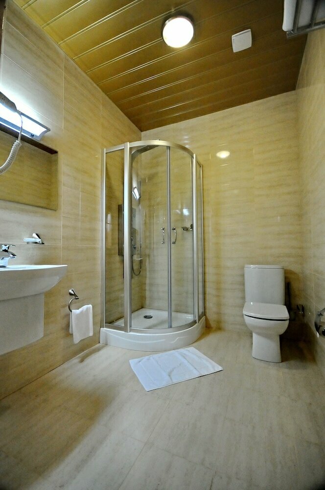 Просторный номер, хороший завтрак (шведский стол). Отель бизнес направленности, с детьми можно, но не удобно (нет пандусов и детских стульчиков). В ванной все необходимое, на ресепшне дали дорожный шейный наборчик,что очень помогло. Конкретно в нашем номере кондей еле дышал, за окном +32,в целом было комфортно. А размеры кровати просто невероятные! Двухкомнатный просторный сьют за 2000! Поздний выезд 150 за каждый час до 16,что тоже очень здорово. Если бы были без ребёнка, то 5 звёзд!