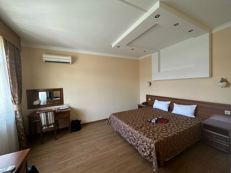 Две звезды только за сотрудников и тихую и уютную атмосферу. В остальном… Приехали с мужем на сутки в Краснодар 7 ноября. Ночью выяснилось что если открыть окно, то нас просто загрызут комары, а если закрыть, то задохнёмся. Сетки на окне нет, в номере душно, кондиционер не работает, сказали на тех обслуживании, даже пульта нет. В общем пришлось идти в два часа ночи за спреем и мазью от укусов.