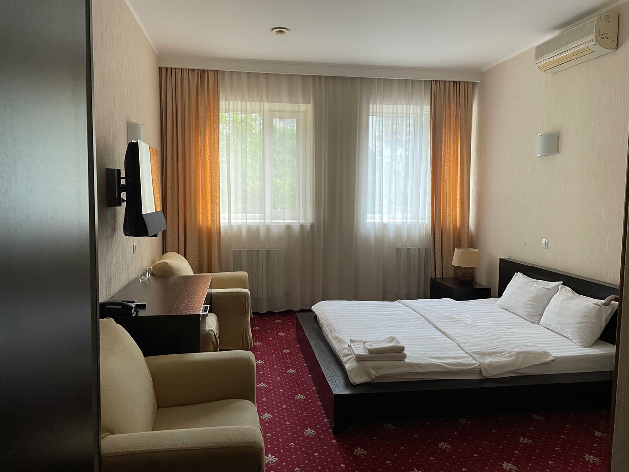Хорошая гостиница, можно позавтракать на первом этаже в обеденном зале. Сплит работает нормально. Сантехника ушатаная, был забит слив ванной.