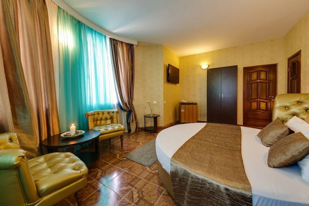 Удобства: номера с кондиционером, мини-баром, холодильником, Wi-Fi и ТВ; бесплатная парковка, крытый бассейн, сауна, джакузи, spa, ресторан, бар, бильярд. Доступны трансфер (включая бесплатный), массаж, салон красоты, прокат велосипедов.