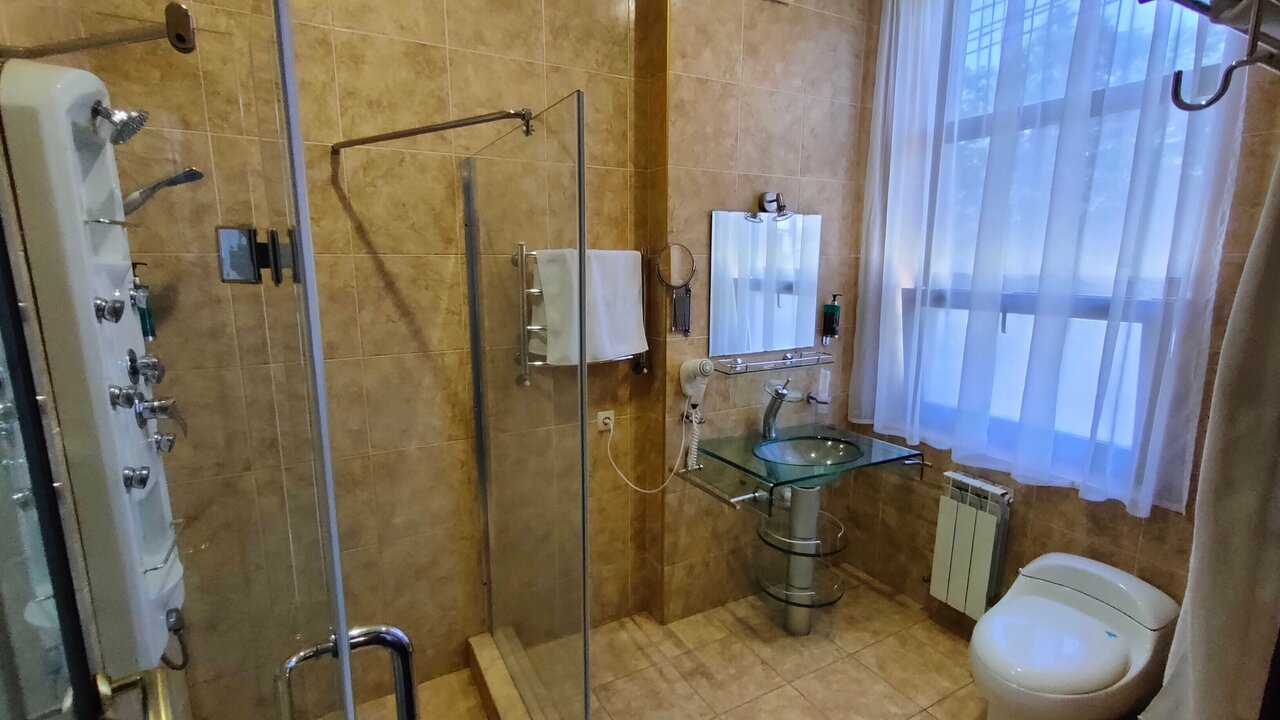 Номер средней паршивости, порвана обшивка кресла, в душе воняет канализацией. Завтрак — ниже плинтуса — выбираешь вечером из трех видов, утром приносят в номер. Каша, яйцо и растворимый кофе — это было не очень… Второй раз не остановлюсь. Из плюсов: не очень дорого.