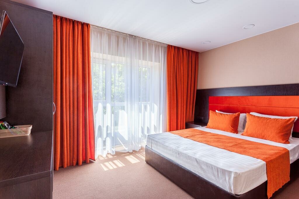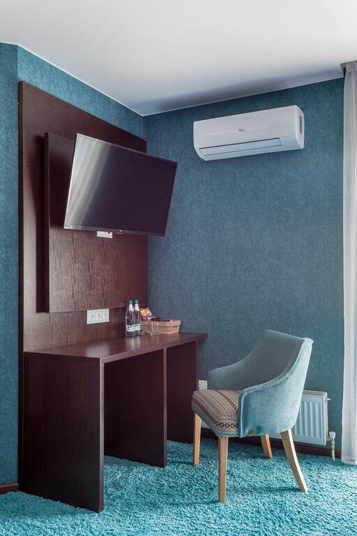 Удобства: — Кондиционер, холодильник, мини-бар, телевизор, Wi-Fi — Собственные ресторан, кафе и бар — Бесплатная парковка, камера хранения, сейф — Санузел в номере, фен, халаты, тапочки, утюг — Проживание с животными, номера для некурящих — Детская площадка (детские кровати: 4-10 лет — платно) — Прачечная, уборка, круглосуточная стойка регистрации