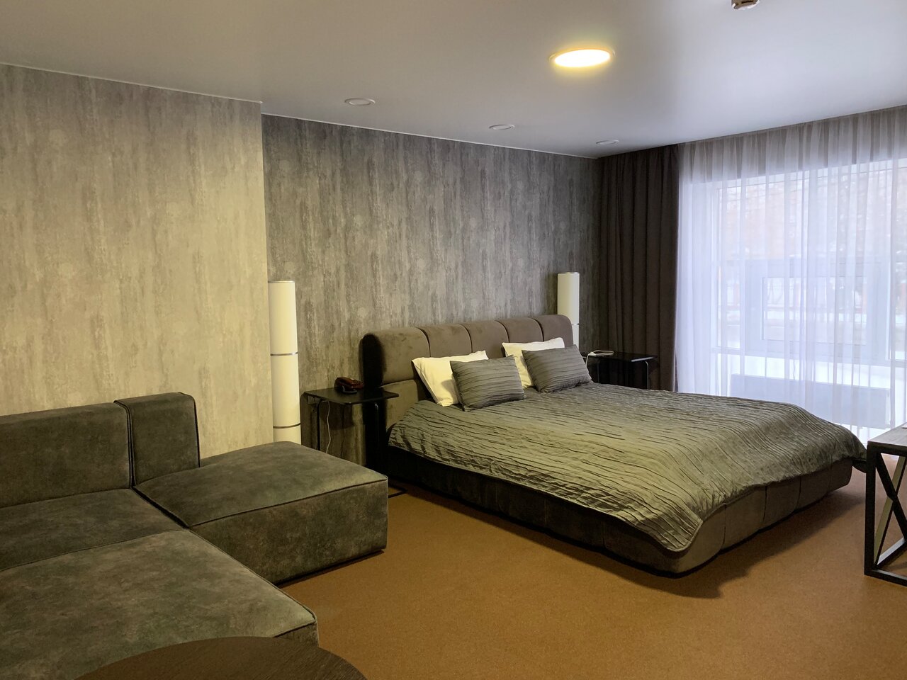 Удобное расположение, есть бесплатная парковка, большая ванная комната. Были с собакой (шпиц) заплатили 500 рублей дополнительно да 1 ночь Нет тапочек Дали только один ключ-карту на двух человек