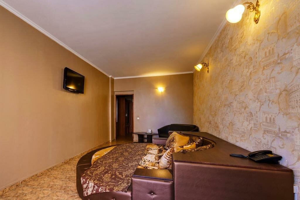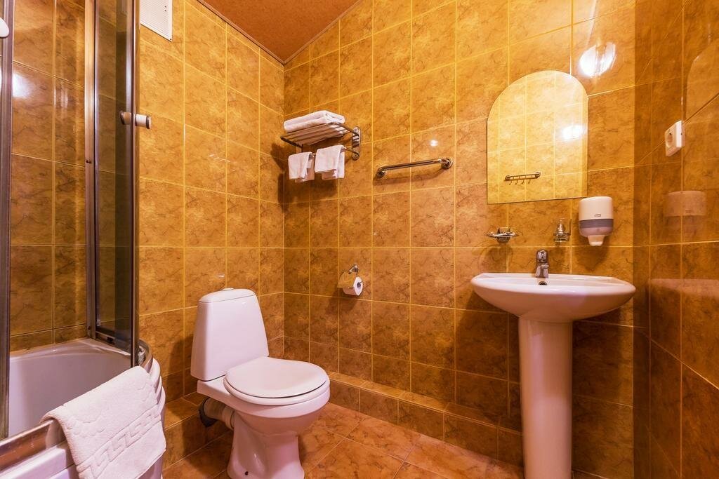 Останавливались на сутки, не посоветую ни кому! Администратор общается через ‘губу’…..Номер темный, кровать двуспальная с одной стороны продавленная, прям провал))) на тумбочке черные волосы,,,,на кровати лежал один полутороспальный пододеяльник, на мое обращение к девушке горничной, почему один маленький, дайте или два, или один двуспальный, ответ убил …она сказала ‘ а что вам не хватит’…..треш….выспаться не удалось, очень шумно, рядом дорога….В ванной темно, душевая кабина сикось-накось…. даже не решились залезть, чтобы без увечий))) вообщем дальше слов нет…. согласна с предыдущим автором, скорее всего этот отель для ‘быстренького времяпровождения’))) запах ужасный, семейным конечно здесь не место!