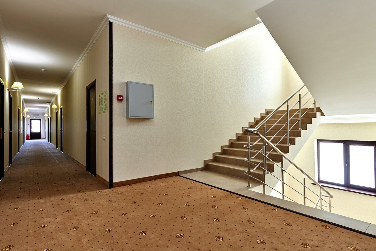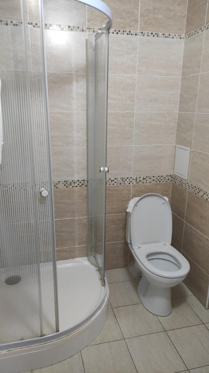 Гостиница в нешумном месте.Чистые и новые номера,все необходимое есть-мыло,шпмпунь,зубная паста,щетка и даже тапочки.Чистая постель..На этаже куллер с горяч и холод.водой.Вкусные обеды и завтраки.Все понравилось.Но..в ванной комнате нет фэна.