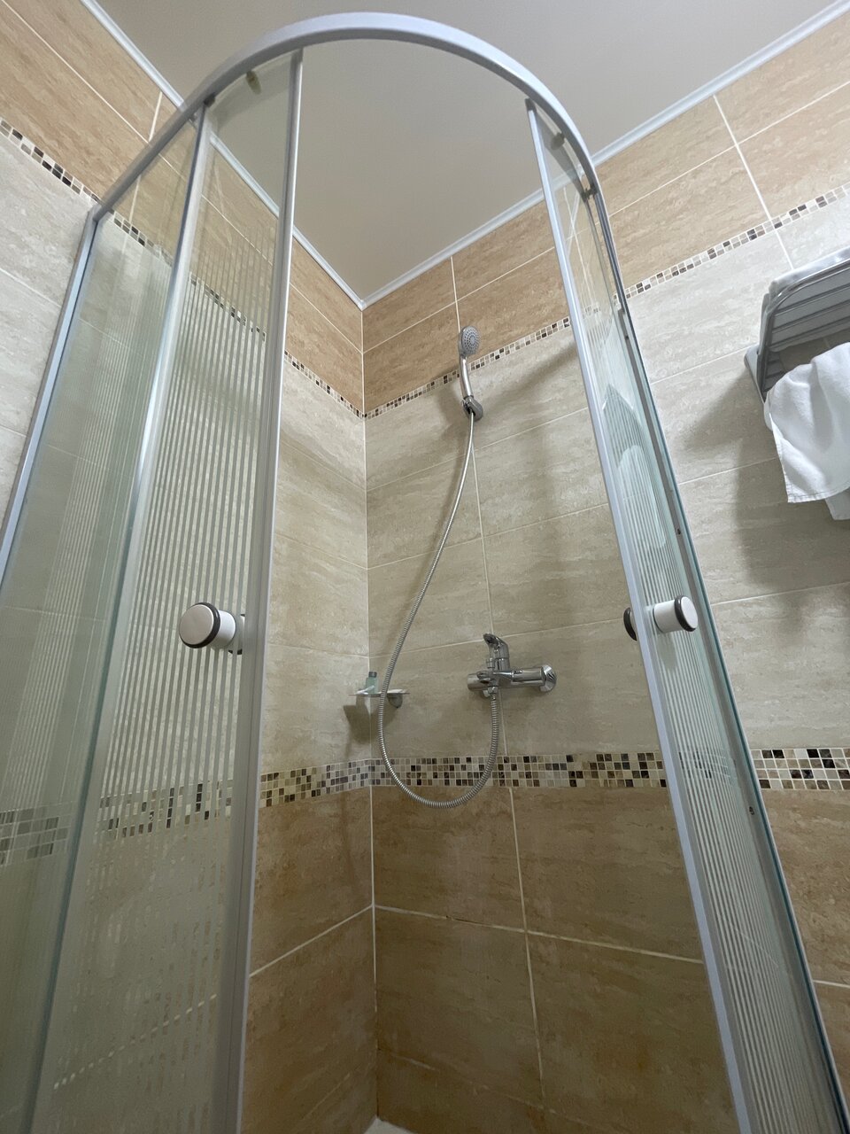 Написано двухспальная кровать , а на самом деле сдвинули две односпальные кровати и они разъезжаются. Душ сломан. Ночью очень шумно никакого спокойного отдыха