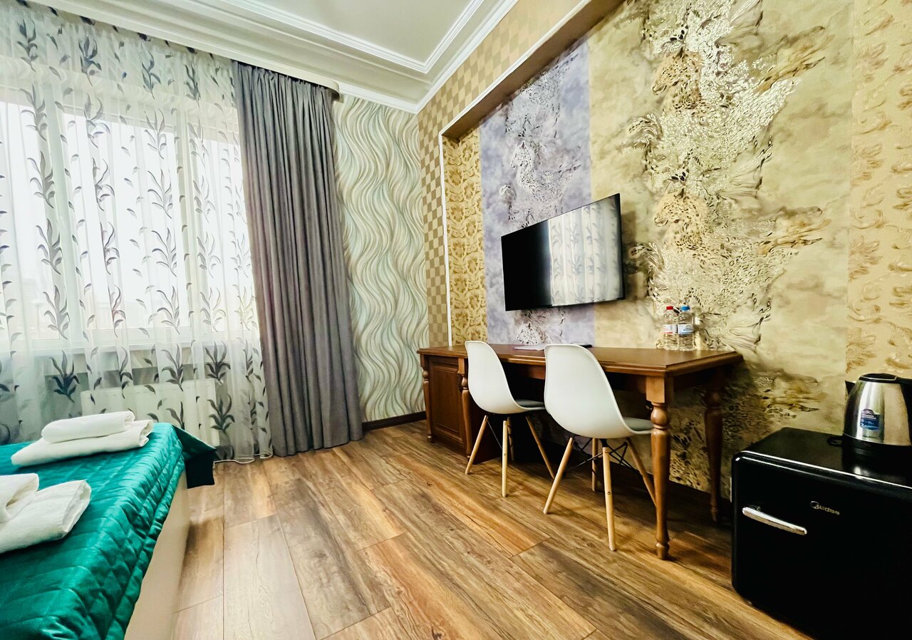 Отель интересный по интерьеру, ремонт сделан из серии дорого богато , стены , потолки и прочее … номер сам неплохой, лифт даже имеется, хотя всего 3 этажа. Минусы- был несвежий пододеяльник, его по просьбе заменили , и в душе кончилась вода , на самом интересном месте, когда я мыла голову. За это сниму звезду , а так всё хорошо , к заезду рекомендую.
