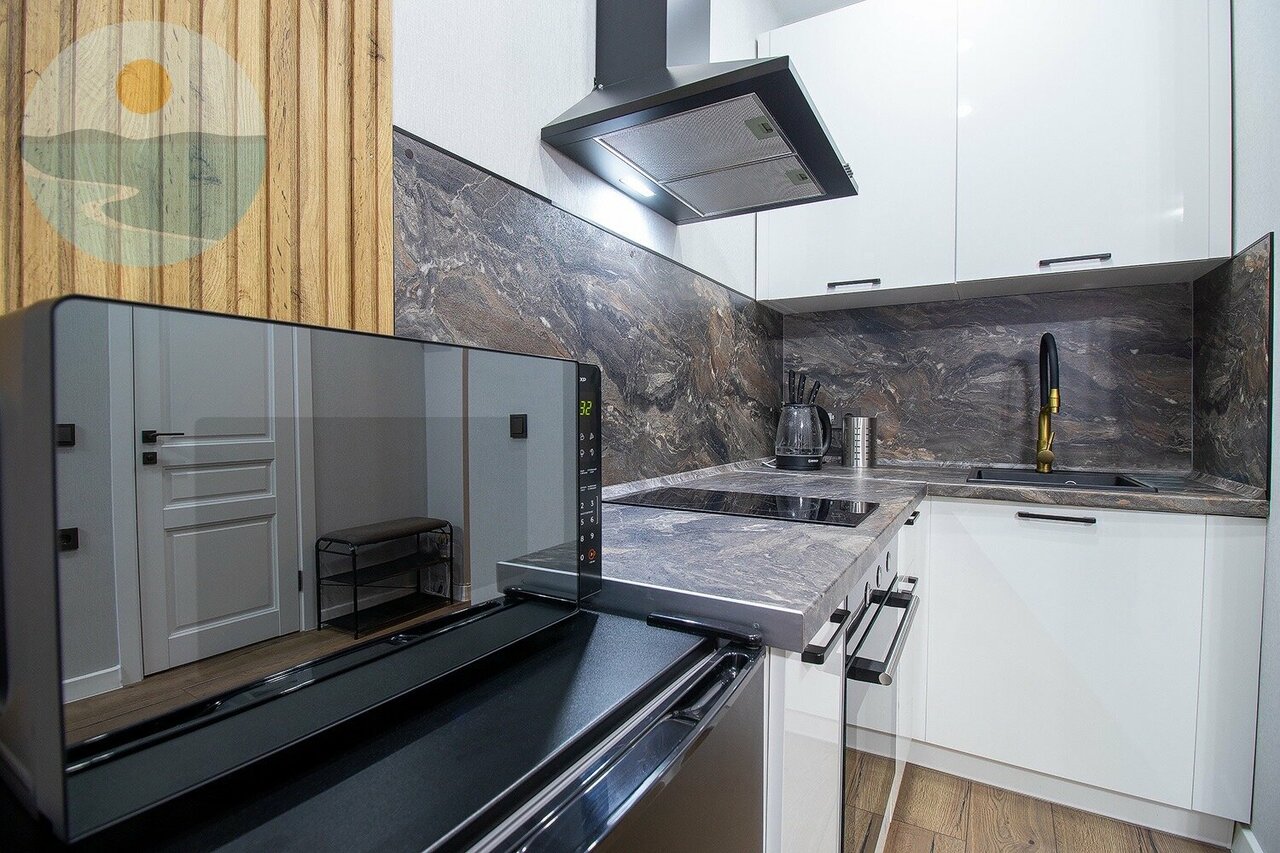 Кухня гостиная, спальня. Квартира оборудована всем необходимым для комфортного проживания и отдыха. Спальня, гардеробная, кухня гостиная с полноценным диваном.
