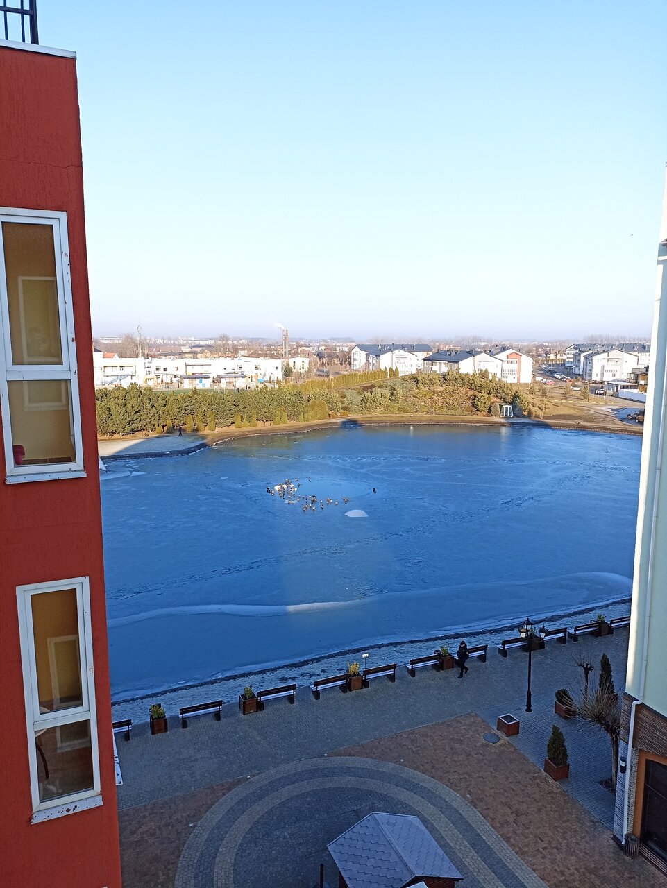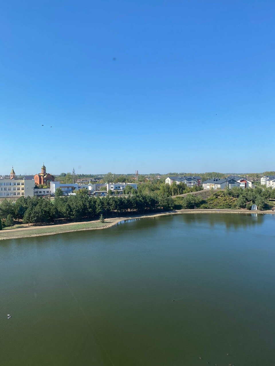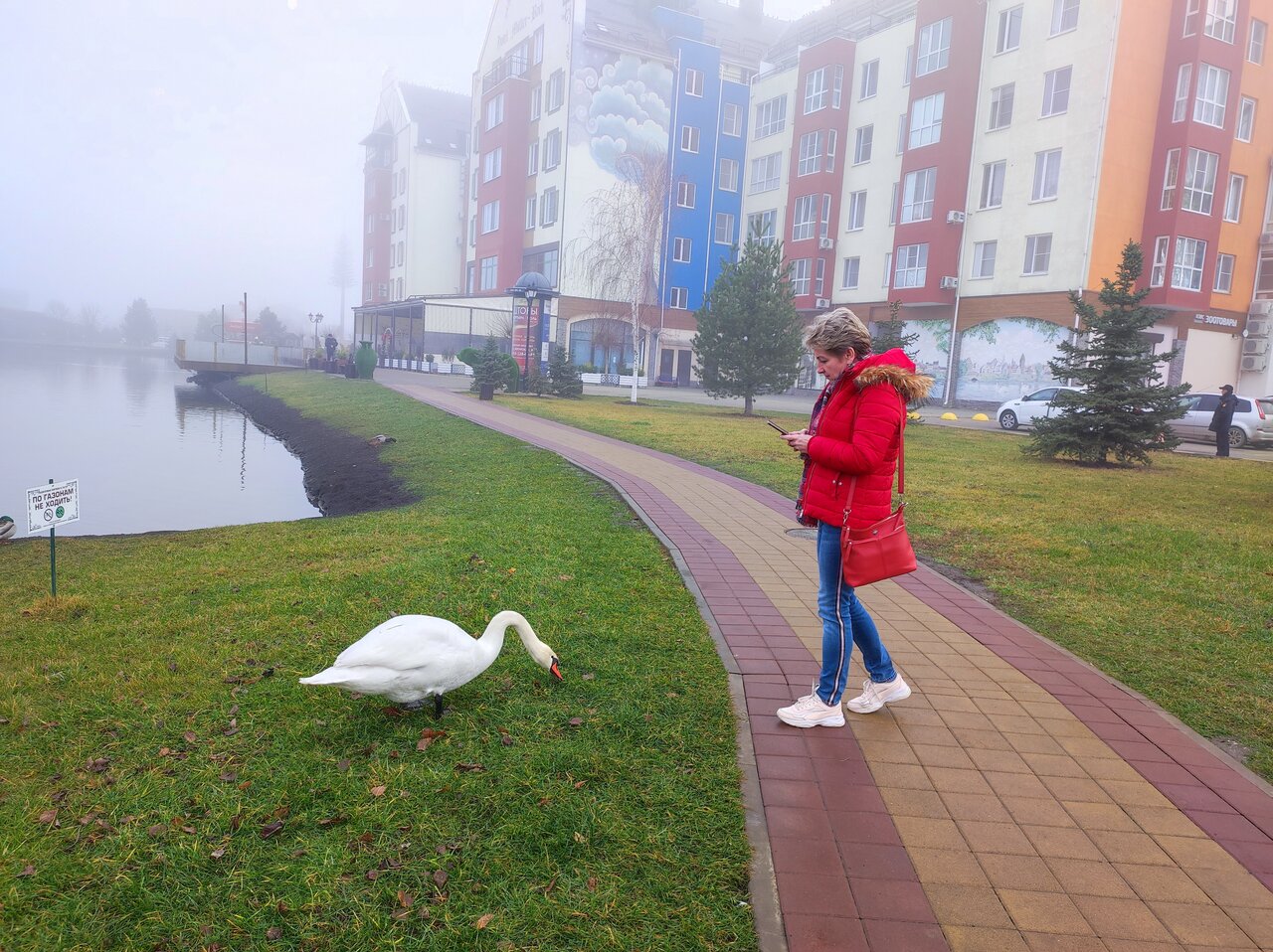 - Красивая территория (озеро, лебеди, утки, зелёная зона).