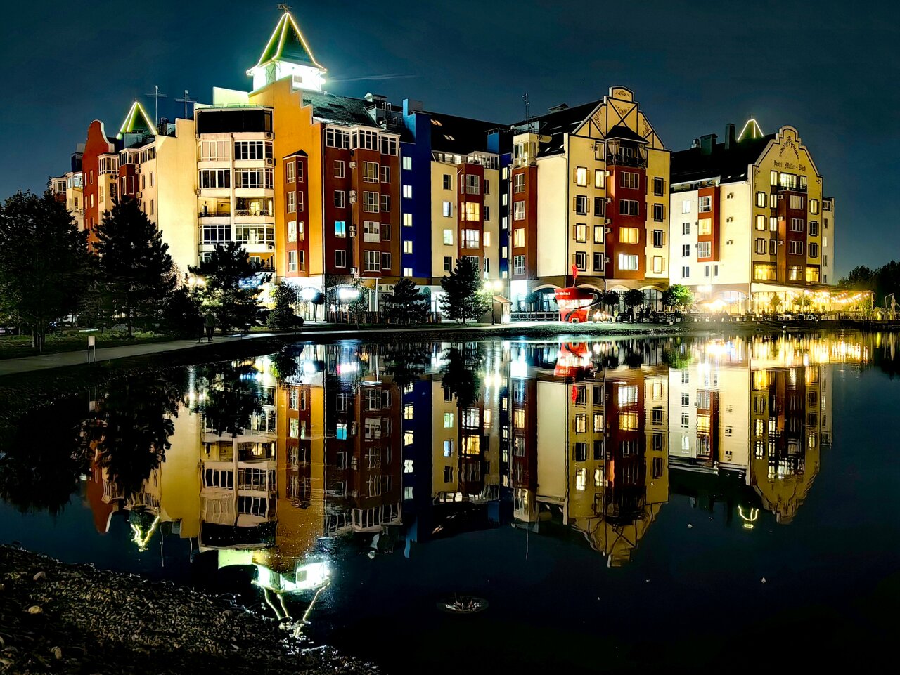 - Хорошая инфраструктура рядом (магазины, заведения).; Красивая территория (озеро, лебеди, утки, зелёная зона).; Спокойная атмосфера вдали от городской суеты.; Наличие ресторана на первом этаже (вкусная еда, хорошие завтраки).; Подземная парковка.